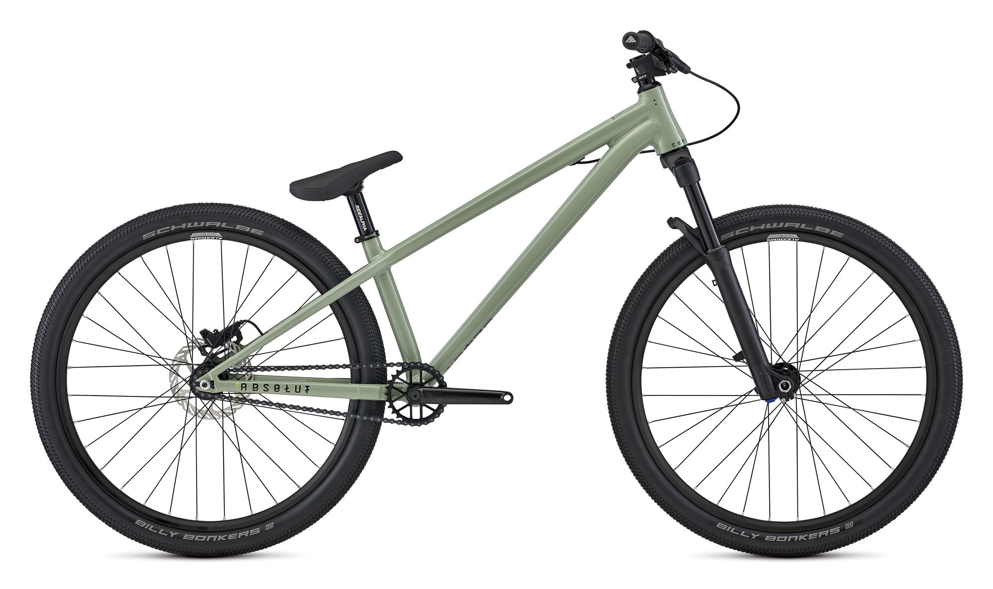 Das Absolut kann mit einem starken Rahmen und einer breiten Palette an hervorragenden Komponenten aufwarten: eine Manitou Expert Circus-Gabel, SRAM Level-Bremsen, Novatec-Naben auf Alex-Felgen, Maxxis Dirt-Special-Reifen und Fertigteile der Hausmarke Commencal.