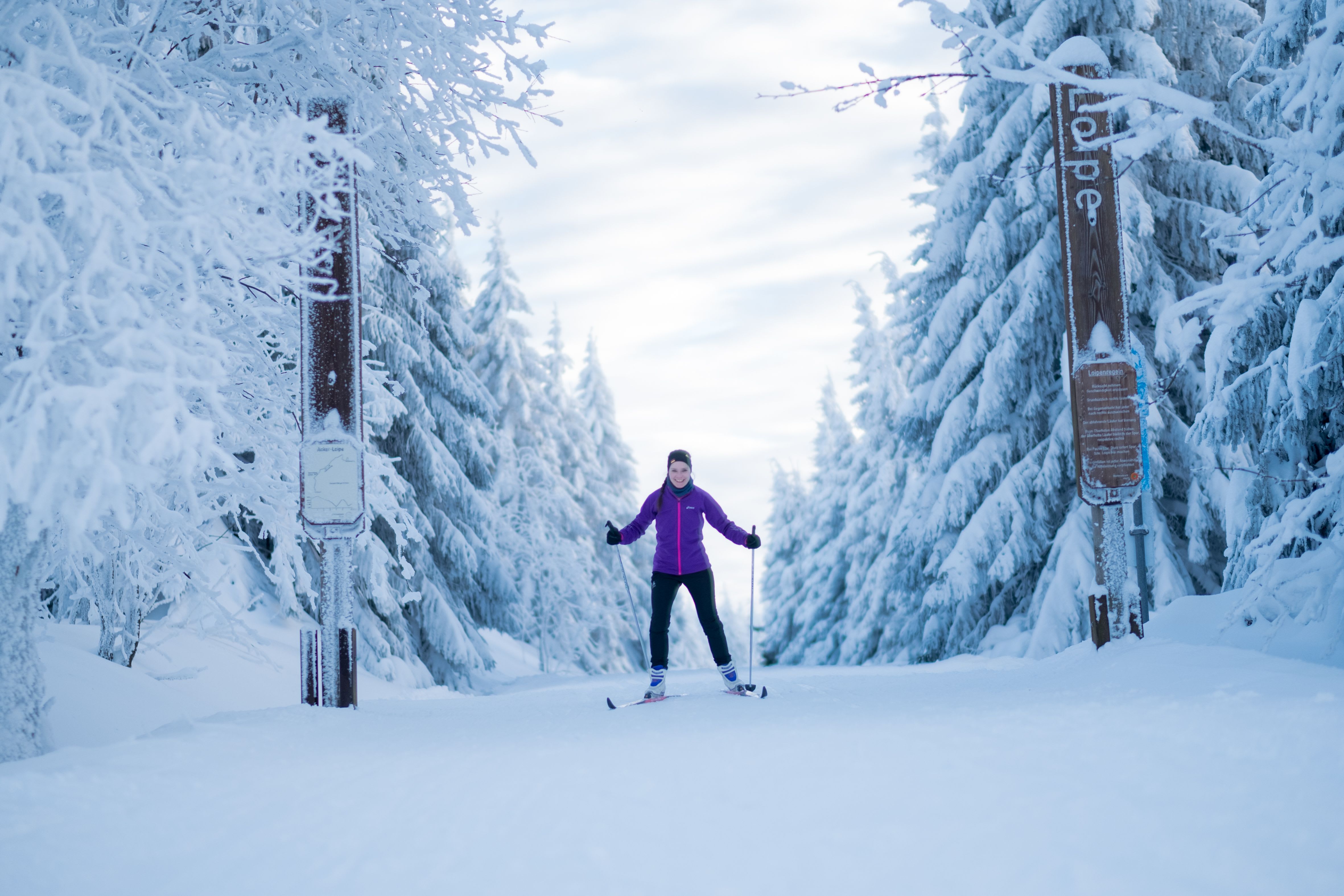 Wo soll man anfangen? Der Bayerische Wald ist gespickt mit Langlauf-Zentren. In den einsamen Weiten Ostbayerns läuft man in Breitenberg auf sonnigen Loipen, in Zwiesel durch den Bilderbuch-Winterwald, im Arberland über Grenzen und in Bodenmais auf 114 Kilometern vorbildlich gepflegten Runden – oder der 30 Kilometer langen Höhenloipe vom Bretterschachten über die Chamer Hütte und Schareben bis zum Eck. Für Gäste gibt es eine kostenlose Busanbindung aus Bodenmais und im Aktivzentrum kann man sich umziehen und sogar seine Skier präparieren.