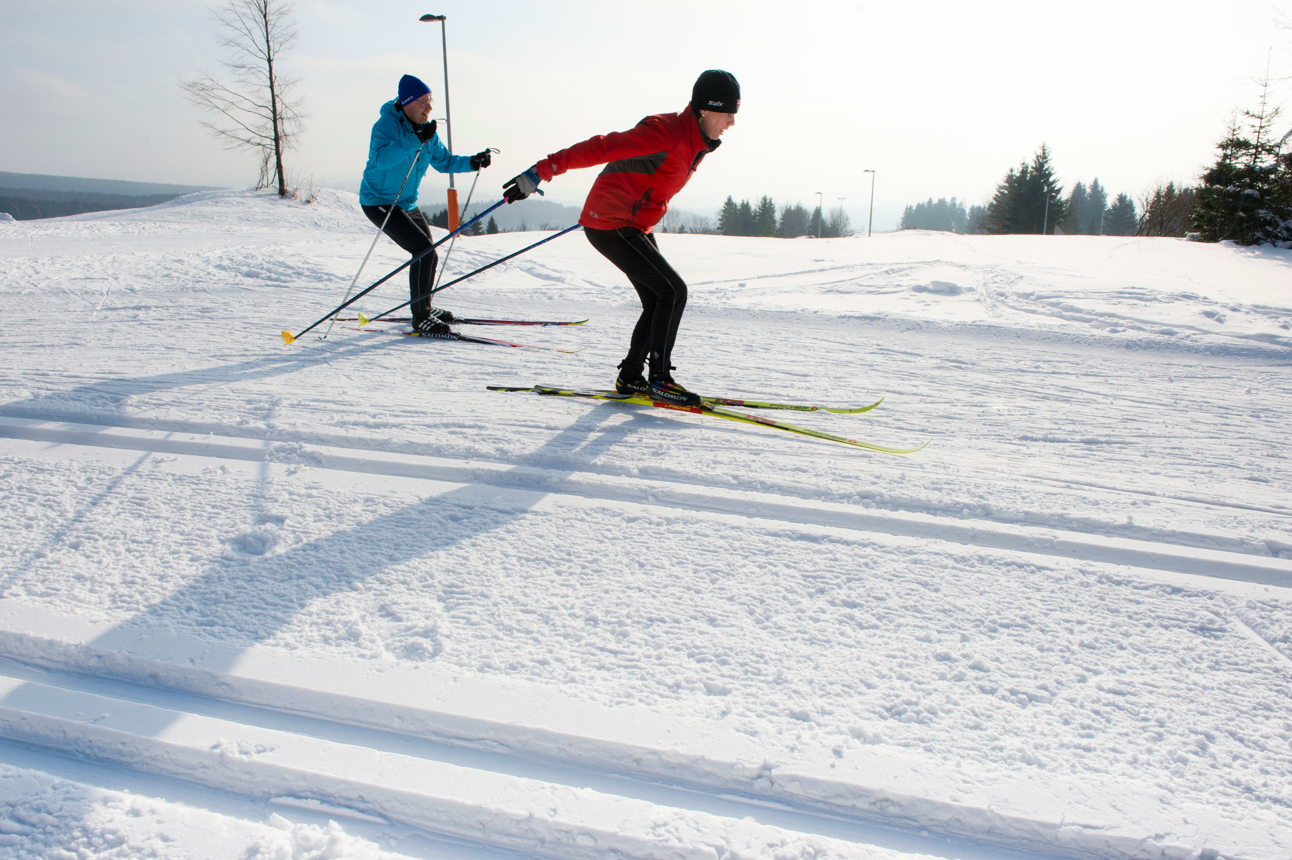 Im Hochsauerland sind die Loipen rund um Westfeld-Ohlenbach und Nordenau zu einem Netz aus rund 90 Kilometern miteinander verknüpft – und sie sind allesamt von der Sporthochschule Köln zertifiziert. Schneesicher ist die sechs Kilometer lange Loipe des Skilanglaufzentrums, denn die wird von Dezember bis März beschneit. Unter Flutlicht kann man hier mittwochs und freitags bis 19.30 Uhr laufen. Das Ticket kostet 5 €.