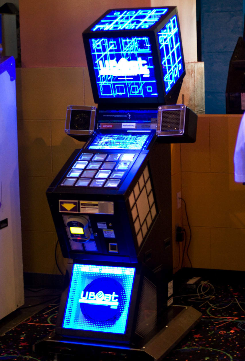 Ein Spiel das mit dem Design seines Automaten sofort auffällt ist Jubeat. Der Würfel hat auf einer Seite eine Paneel aus vier mal vier Buttons, in denen sich Bildschirme befinden. Diese füllen sich im Rhythmus der Musik mit Lichtern und müssen gedrückt werden oder gehalten werden. Zwar ist das Gameplay nicht extrem ungewöhnlich, die Aufmachung des Cabs mit seinen 16 Mini-Screens ist aber auf jeden Fall besonders.