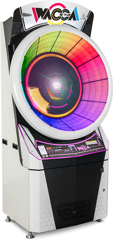 WACCA erinnert von der Aufmachung an einen übergroßen Lautsprecher. Die gesamte “Membran” ist mit Touch-Paneelen ausgestattet. Wie bei anderen Musikspielen auf der Liste gilt es diese dann mit passendem Timing zu berühren und Slides auszuführen. Der Besondere Clou ist dabei, dass sich das Gameplay in 360 Grad um den Bildschirm herum abspielt.