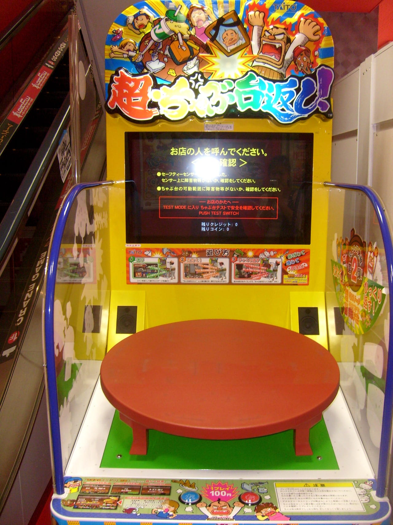 Wir alle kennen es: Das mentale Bild des “Table Flips”. Wenn der Zorn hoch kocht und man am liebsten den Tisch vor einem umwerfen würde. Egal was sich gerade darauf befindet. Cho Chabudai Gaeshi! lässt diese Fantasie werden. Der Controller dieses Arcade-Games ist ein kleiner Tisch. Mit energischen Schlägen müsst ihr je nach Szenario Zorn aufbauen, nur um zum richtigen Zeitpunkt den Tisch durch die Gegend zu werfen und möglichst viel Schaden anzurichten.