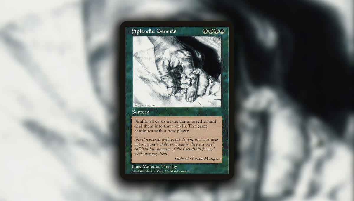 Alle Karten auf dieser Liste sind tatsächlich spielbar. Nicht in allen Formaten, aber sie sind zumindest in Legacy und Vintage erlaubt. Auf Splendid Genesis trifft dies nicht zu. Diese Promo-Karte wurde von Magic-Schöpfer Richard Garfield persönlich erstellt und ist auf 110 Stück limitiert. Sie wurde zur Feier der Geburt seines ersten Kindes gedruckt.