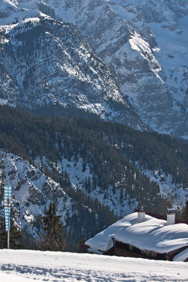 Gestartet wird am Parkplatz, vorbei an der Eibsse Alm, immer auf der Piste in den Eibsee-Wald hinein, bis die Skipiste immer breiter und steiler wird. Man folgt der Piste bis zum Tunneleingang der Zugspitzbahn, hier endet die Tour. Für die Abfahrt wählt man die gleiche Strecke wie beim Aufstieg. Die natürliche Piste, die hier und da etwas präpariert ist, bietet einen tollen Blick auf das Oberammergaugebirge, einen fantastischen Ausblick auf den Eibsee sowie die beeindruckende Nord-West-Wand der Zugspitze, die direkt hinter einem liegt.