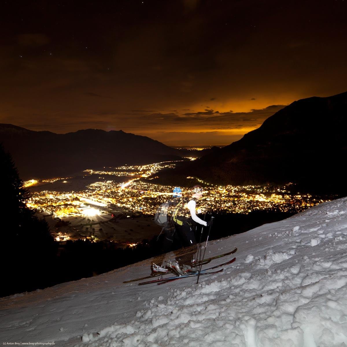 Startpunkt ist der Parkplatz des Hausberg-Skigebiets. Man folgt den Hinweisschildern bis zur Hütte „Drehmöser 9“. Für die Abfahrt wählt man die gleiche Strecke wie beim Aufstieg. Diese Tour ist vor allem dann besonders interessant, wenn man den Trip am Abend startet. Dafür braucht man natürlich Extra-Ausrüstung in Form einer Stirnlampe. Dienstags und donnerstags bietet die „Drehmöser 9“ besondere Öffnungszeiten bis 22 Uhr, sodass man Abendessen und Getränke dort genießen kann. Den Trip bei Nacht sollte man auf jeden Fall wagen: Man bekommt umwerfende Sonnenuntergänge und einen unglaublichen Sternenhimmel zu sehen – einfach magisch.