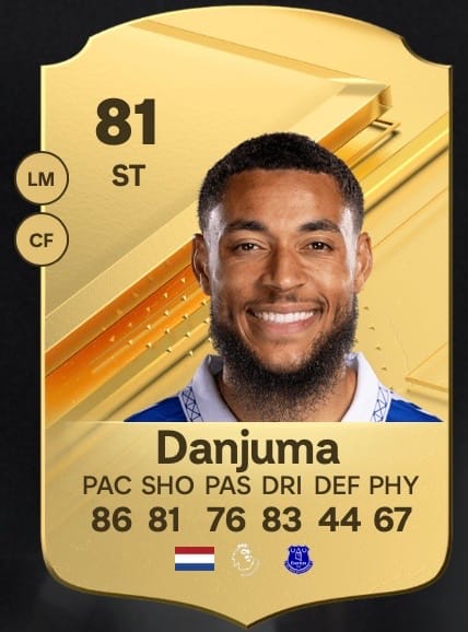 Auf Leihbasis kickt Arnaut Danjuma derzeit für den FC Everton in der Premier League, im Sommer 2024 geht es voraussichtlich zurück zum FC Villareal in LaLiga. In FC 24 Ultimate Team ist der niederländische Nationalspieler der Inbegriff des OP-Spielers. Danjuma ist schnell, dribbelstark, schussstark und für jeden Gegner eklig zu verteidigen. Sein Gesamtrating von 81 wirkt wie ein schlechter Scherz.
