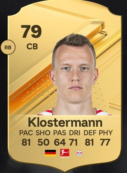 Auch die Roten Bullen sind vertreten! RB Leipzig-Verteidiger Lukas Klostermann weiß in FC 24 einmal mehr zu überzeugen - trotz einem eher mageren Gesamtrating von 79. Mit seinem Tempo, seiner Defensivstärke und seiner Physis ist er ein Top-Spieler für eure Abwehrzentrale.