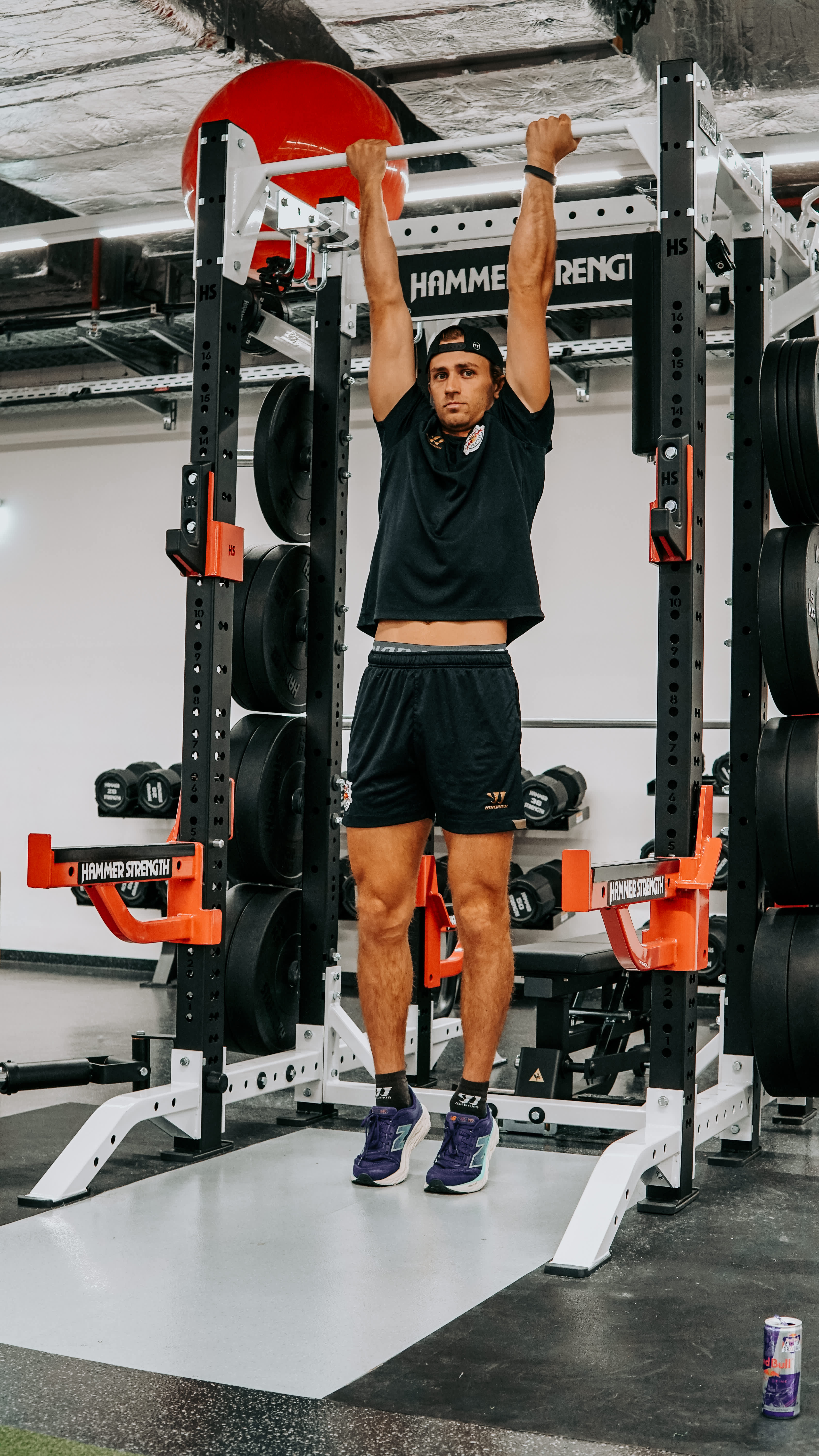 Außerdem setzt er auf explosive Elemente wie Sprünge und arbeitet mit hohen Gewichten bei wenig Wiederholungen, was sich positiv auf seine Schnelligkeit auswirkt.