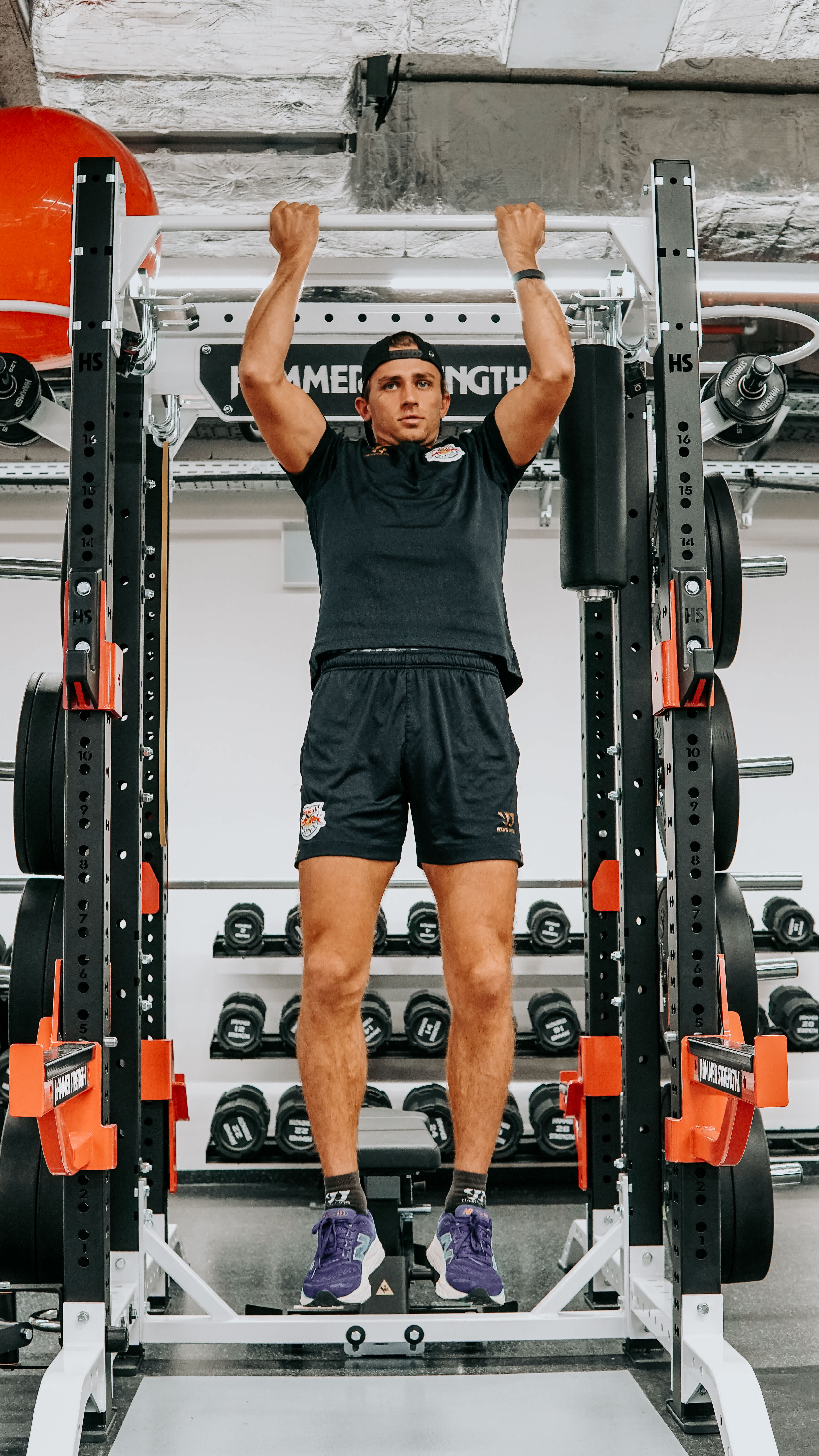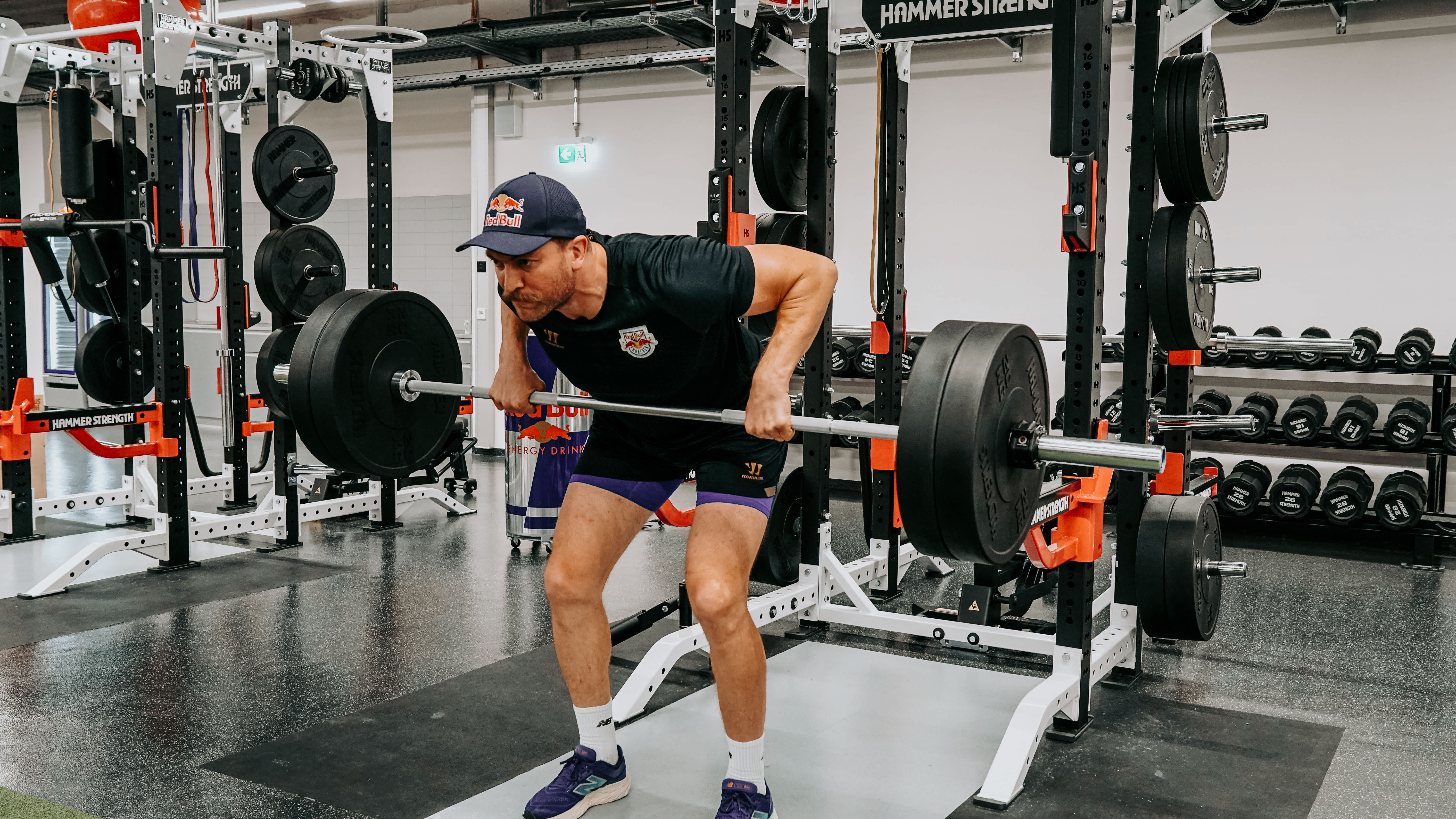 Für Markus Eisenschmid bleibt die Kniebeuge das Maß aller Dinge: „Das ist für mich die wichtigste Übung, ich mache sie mit der Langhantel vorne. Dadurch trainiere ich Rumpf und Unterkörper ohne Belastung des unteren Rückens, was bei Eishockeyspielern oft eine Schwachstelle ist.“ Zusätzlich nutzt er Single-Leg Deadlifts. „Das hilft mir, das Becken zu stabilisieren, was auf dem Eis enorm wichtig ist.“