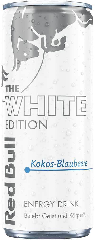 Die Red Bull White Edition mit dem Geschmack von Kokosnuss und fruchtiger Blaubeere.