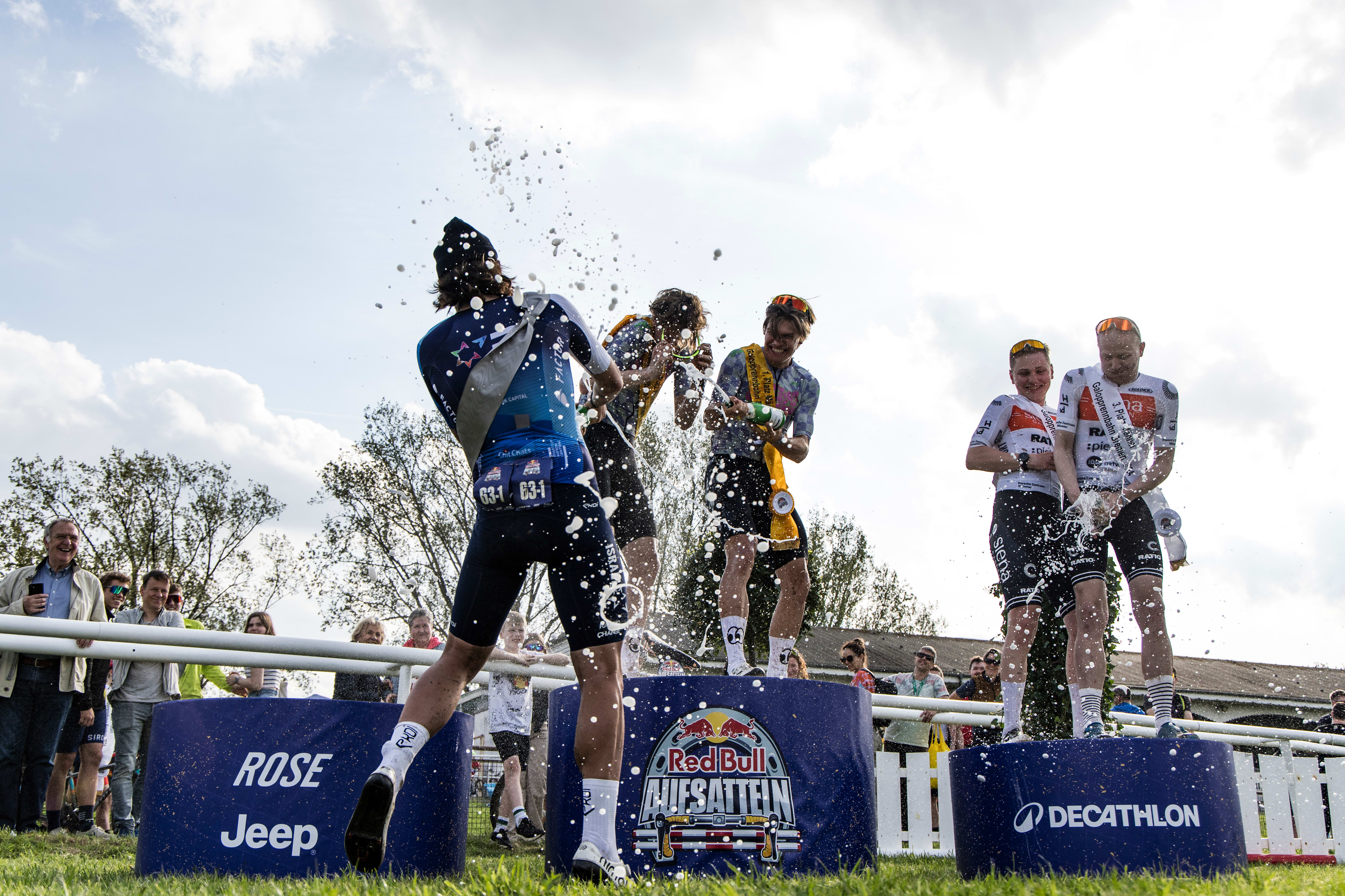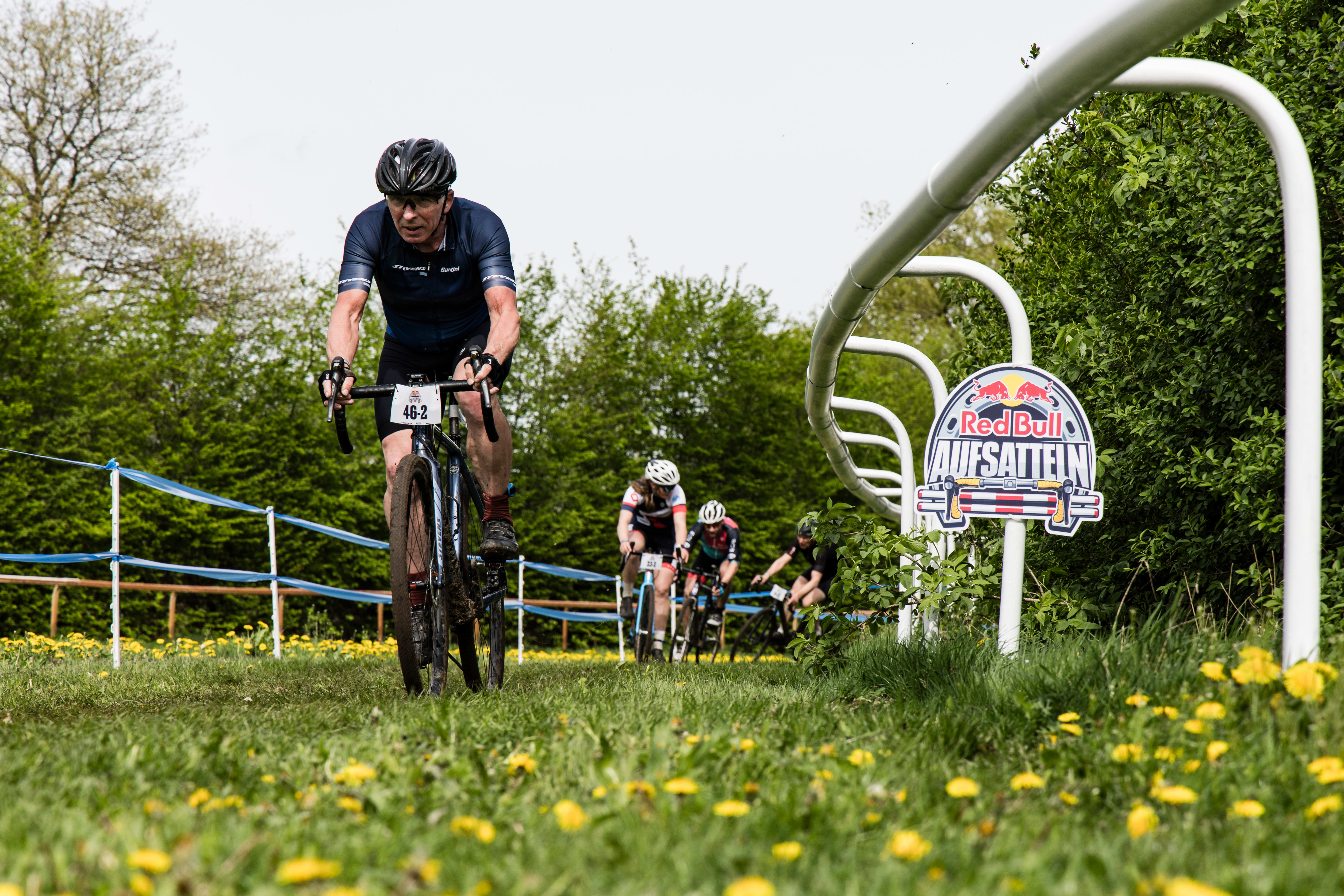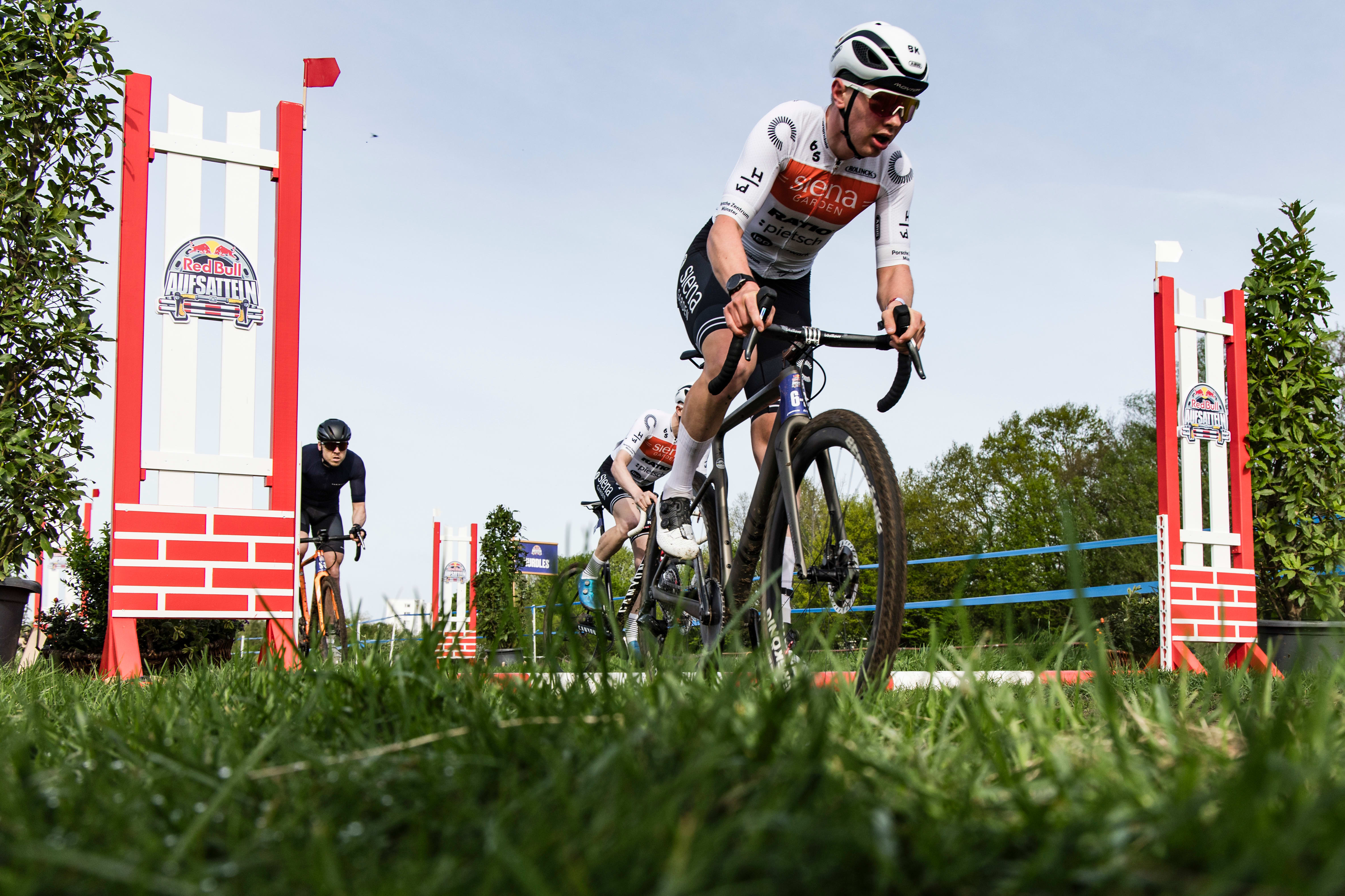 Zwei Gravel- oder Cyclocross-Bikes, ein Team von zwei Fahrer:innen und ein Kurs auf dem die Hufe geschwungen werden, das waren die Eckdaten bei der Premiere von Red Bull Aufsatteln.