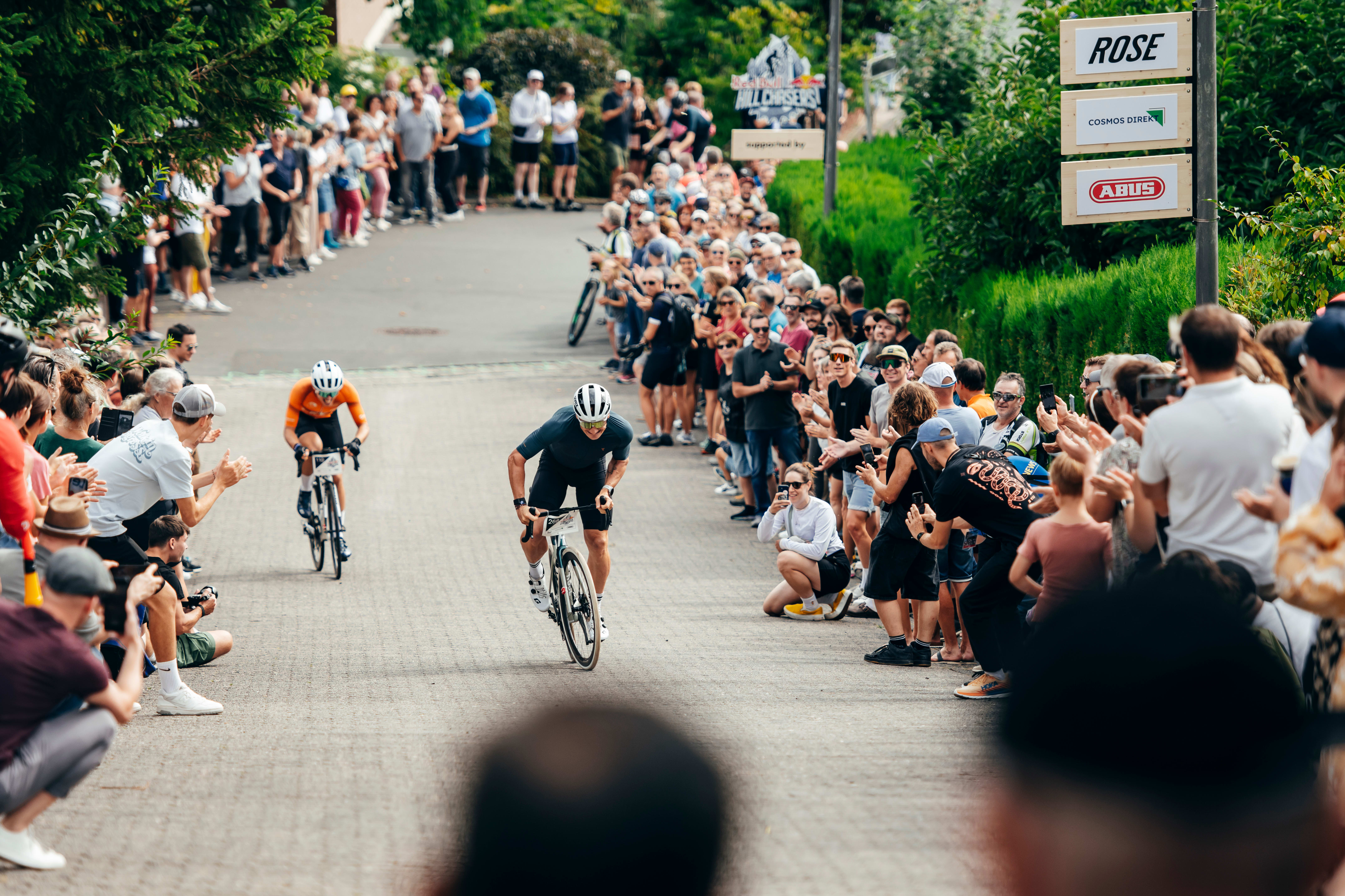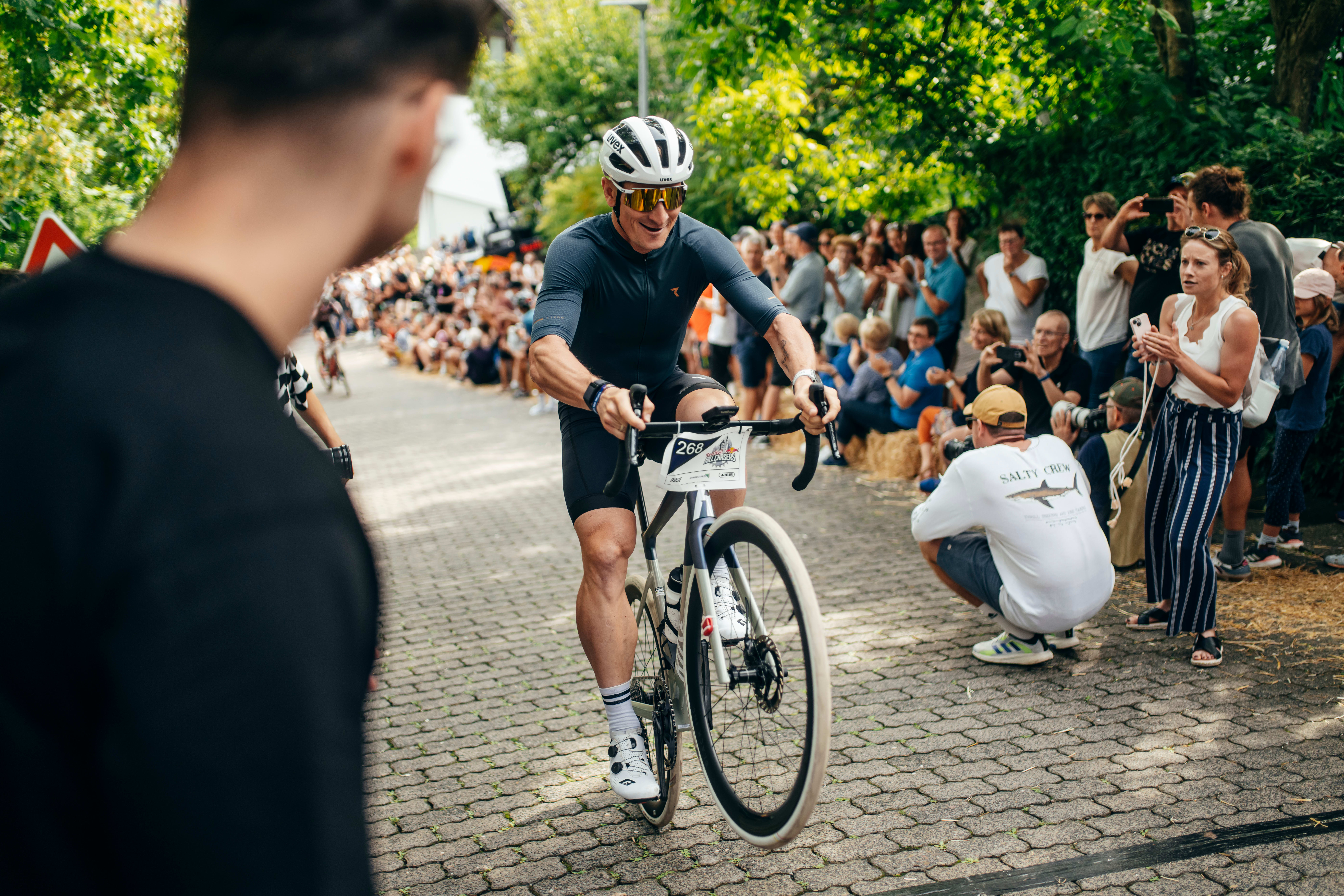 Auf dem Rennrad, Mountainbike oder Gravelbike, 700 Meter Bergauf, bis zu 32% Steigung: Das sind die Eckdaten, die es bei Red Bull Hill Chasers am 3. September 2023 zu bezwingen galt.