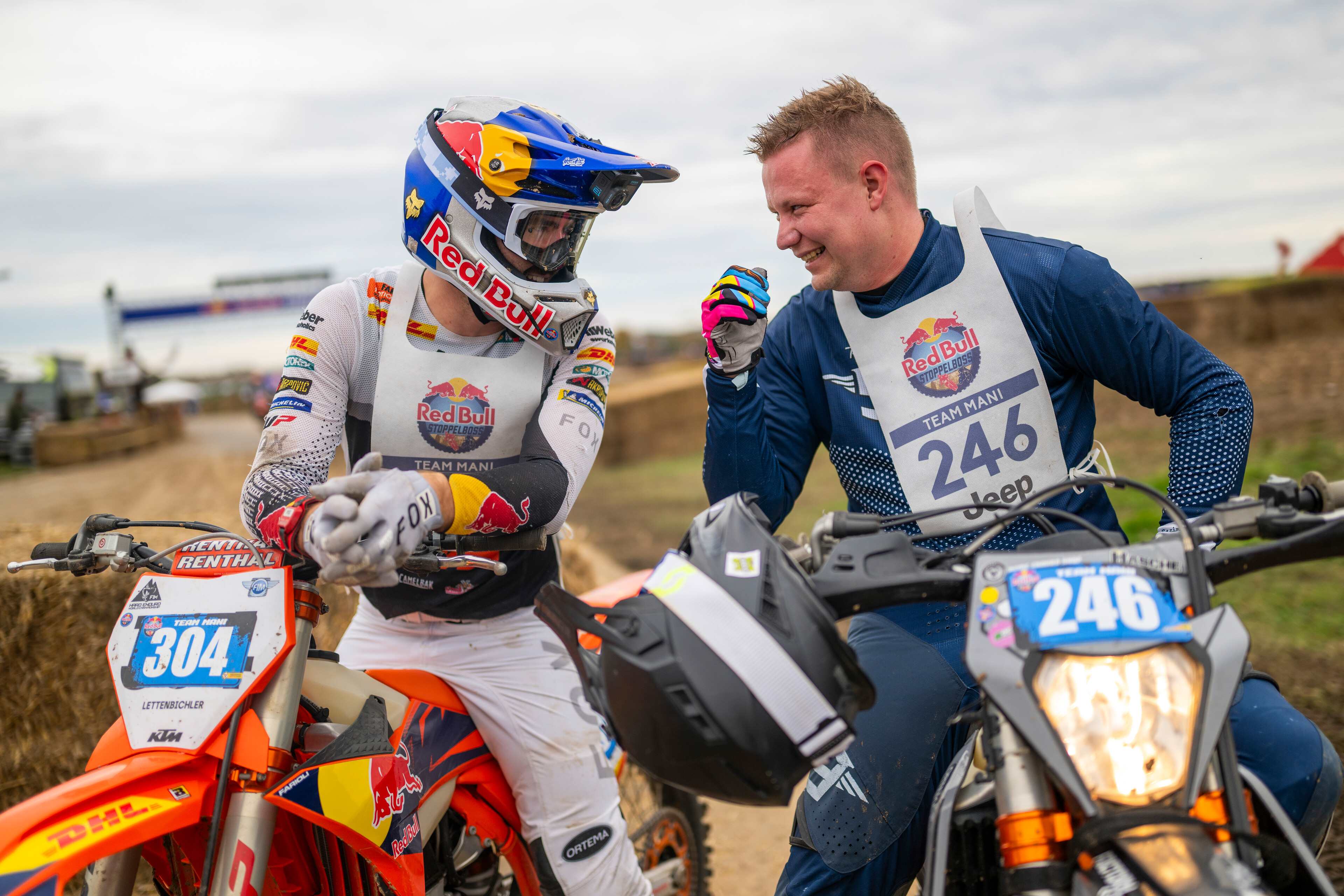 Auf einem abgeernteten Stoppelfeld wurde Adrenalin und Action groß geschrieben. Mitten im Geschehen standen die Red Bull-Athleten Manuel „Mani“ Lettenbichler, frischgebackener Hard-Enduro-Weltmeister, und Simon Längenfelder, amtierender MX2-World Champion.