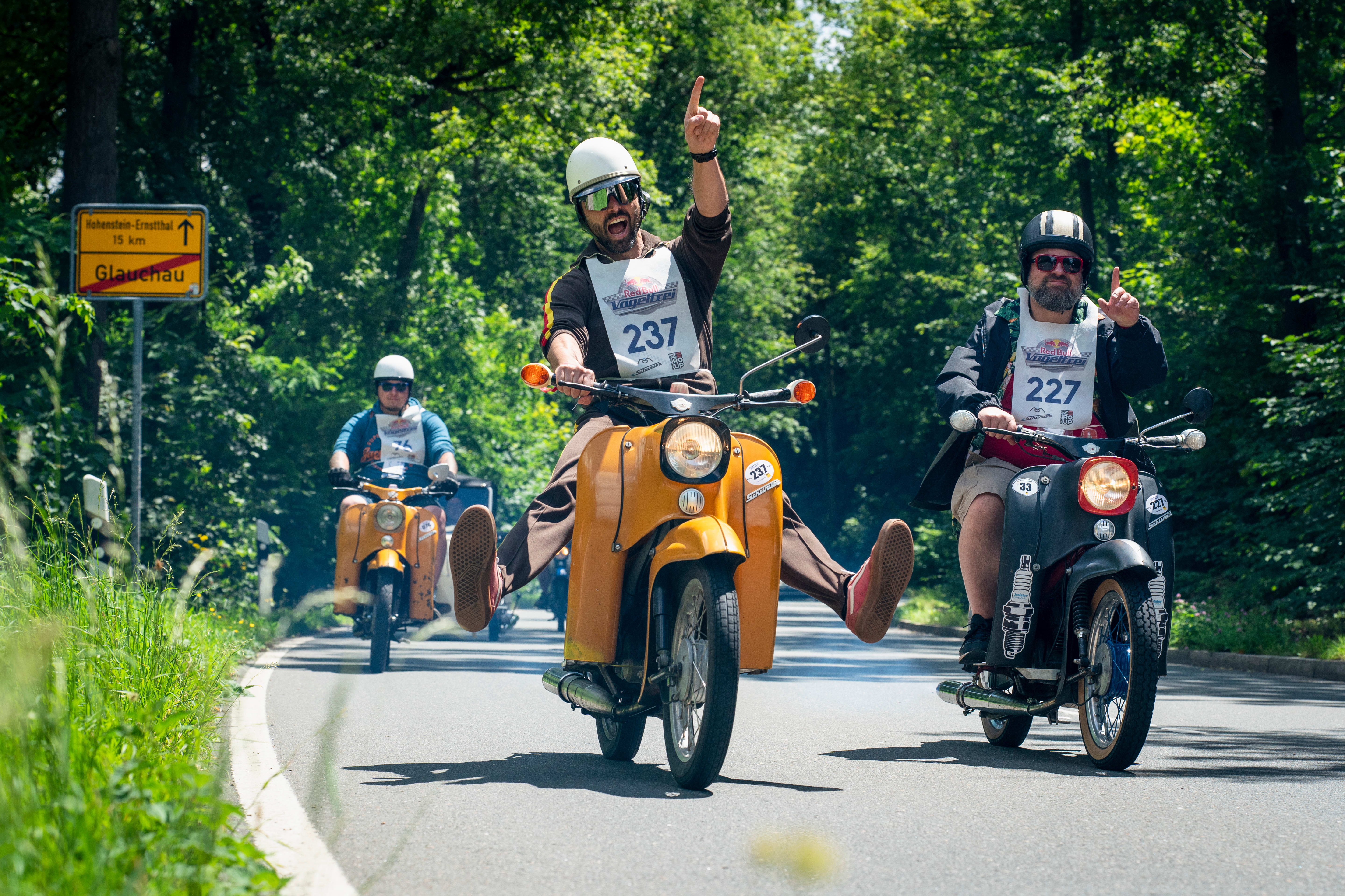 Schwalbe, Spatz, Star, Sperber oder Habicht - egal ob perfekt erhaltene Originale oder detailverliebte Umbauten, die legendären Simson Mopeds zogen bei Red Bull Vogelfrei alle Blicke auf sich.