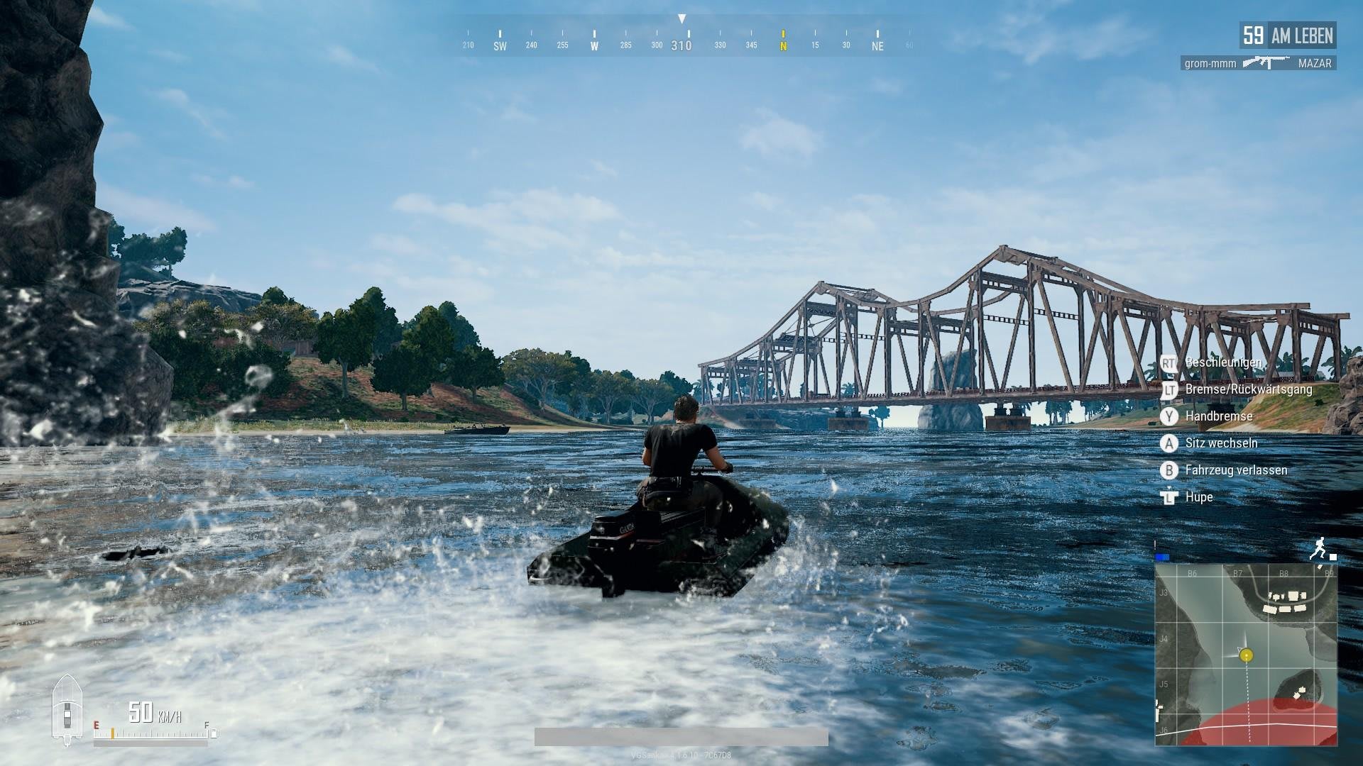 Schaut man sich Sanhok aus der Luft an, fällt umgehend die Einteilung in drei verschiedene Inseln auf, die durch mehrere Brücken miteinander verbunden sind. Da es jedoch speziell an diesen Nadelöhren meist zu sehr intensiven Feuergefechten kommt, hat sich die Relevanz von Wasserfahrzeugen spürbar erhöht. Die gute Nachricht: Insbesondere die handlichen Aquarails spawnen auf Sanhok deutlich häufiger als beispielsweise auf Miramar und erwiesen sich im Probespiel als sehr probates Mittel, um schnell von einem Ufer zum anderen zu gelangen oder auf dem zentralen Flusslauf größere Distanzen zurückzulegen. Klappt natürlich auch mit dem weniger wendigen, dafür aber schnelleren Speedboat.