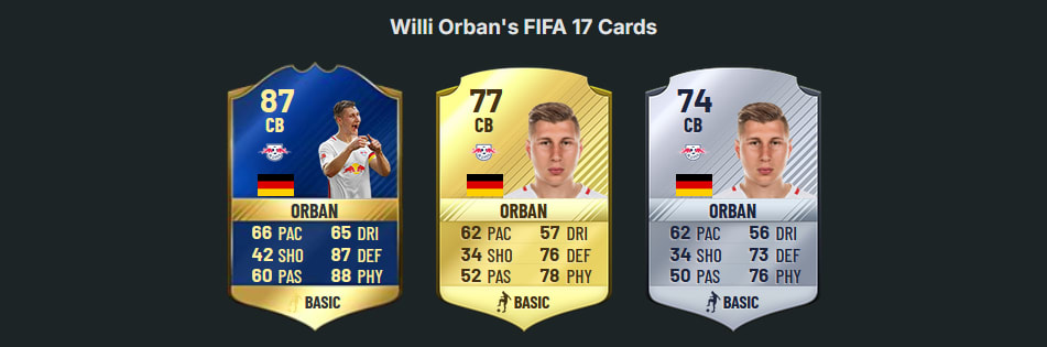 Der Wechsel zu RB Leipzig im Jahr 2015 veränderte die Relevanz von Willi Orbán für Ultimate Team grundlegend. Mit dem Aufstieg in die 1. Bundesliga zur Saison 2016/17 erreichte der Defensivspezialist den Gold-Status. In FIFA 17 besaß Orbán erstmals eine Wertung von 77 Punkten. Ab diesem Zeitpunkt dokumentiert seine Kartenhistorie eine fast lückenlose Serie an jährlichen Upgrades.