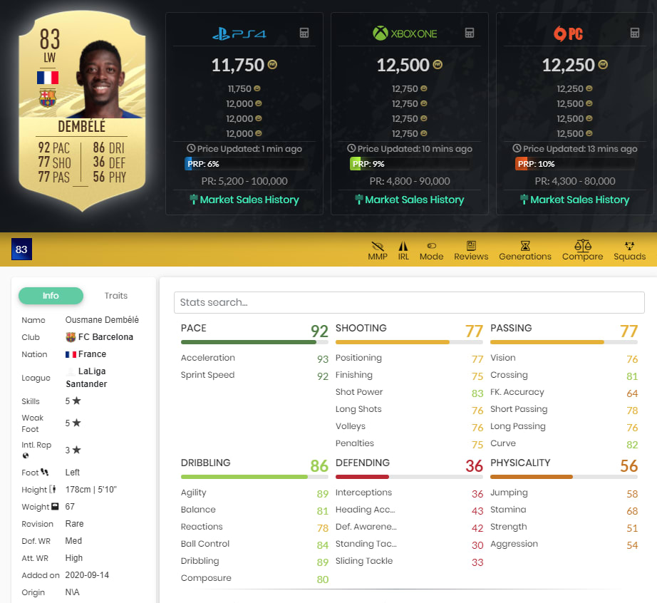 Auch Ousmane Dembélé vom FC Barcelona ist als Supersub bestens geeignet. 92 Pace und 86 Dribbling sind Ratings, die euch ermöglichen, die erschöpften Abwehrspieler eures Gegners schwindelig zu spielen. Außerdem hat Dembélé sowohl bei den Skills als auch auf dem schwachen Fuß fünf Sterne. Die rund 12.000 Münzen sind definitiv gut investiert!