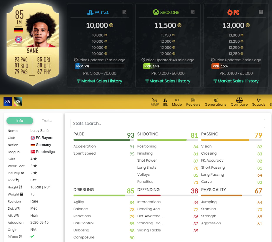 Etwas teurer ist Leroy Sané von Bayern München. Aber das hat auch mehrere gute Gründe: 93 Pace, 85 Dribbling und 81 Schießen sind absolute Top-Werte. Sané ist sicher auch eine Option für die Startelf, mindestens solltet ihr ihn aber als Supersub auf der Ersatzbank haben. Der deutsche Nationalspieler könnte am Ende derjenige sein, der euren Sieg unter Dach und Fach bringt.