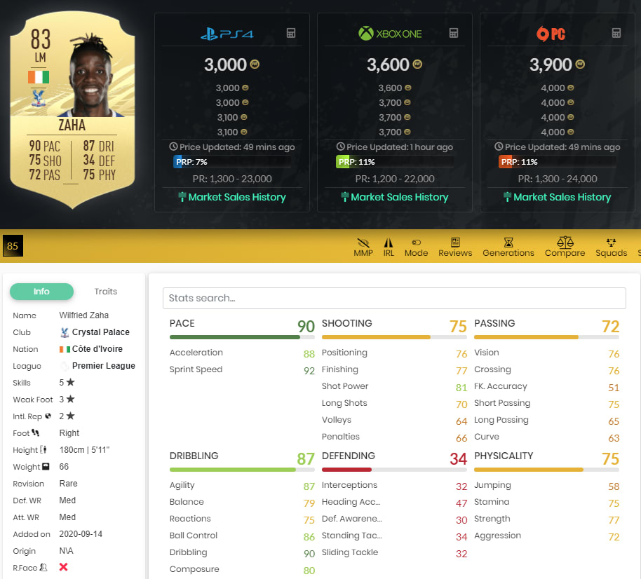 Nicht viel teurer ist Wilfried Zaha vom Premier League-Klub Crystal Palace. 90 Pace, 87 Dribbling und 5-Sterne-Skills machen ihn zu einer echten Waffe für die letzten Spielminuten. Wechselt ihr Promes rechts und Zaha links im Mittelfeld ein, könnt ihr euren Kontrahenten auf beiden Seiten mit wahnsinnig viel Tempo vor Probleme stellen.