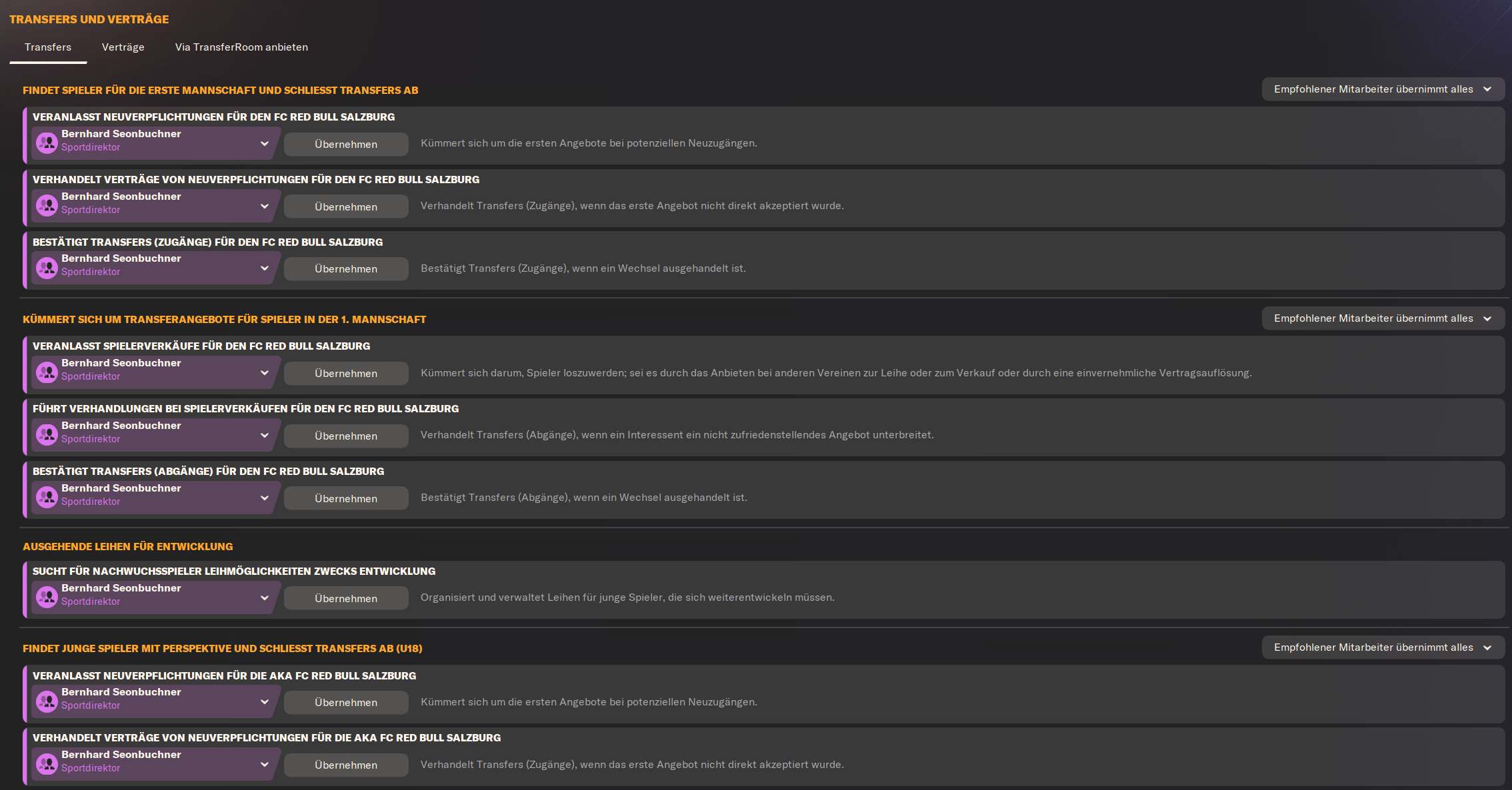 Die besondere Herausforderung bei dieser Challenge ist es also, mit dem Material zu arbeiten, das euch der Sportdirektor zur Verfügung stellt und zugleich darauf zu vertrauen, dass dieser mit den Abgängen auch gute Ablösen lukriert.