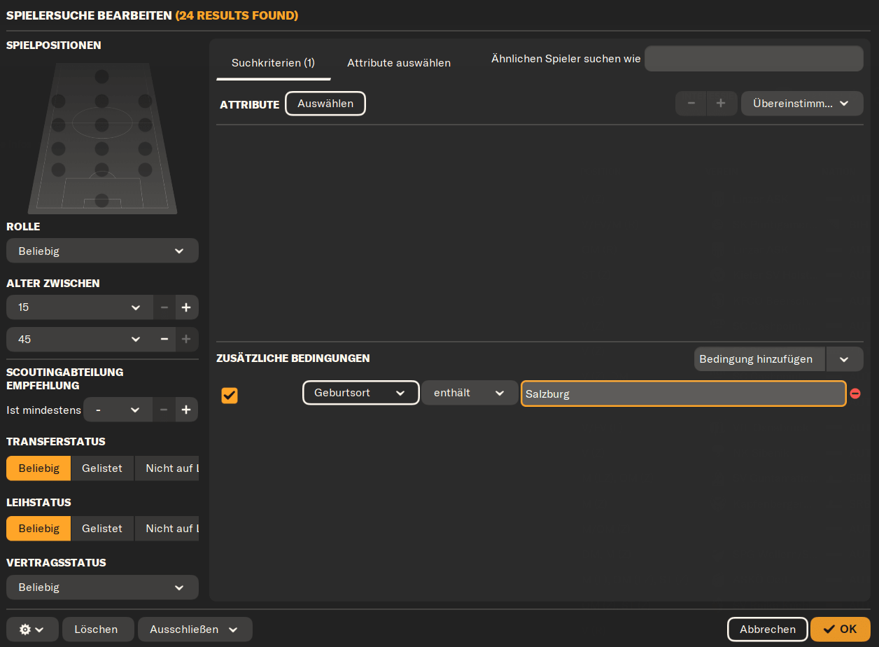 - Spieler nur aus bestimmten Städten / Regionen / Ländern verpflichten