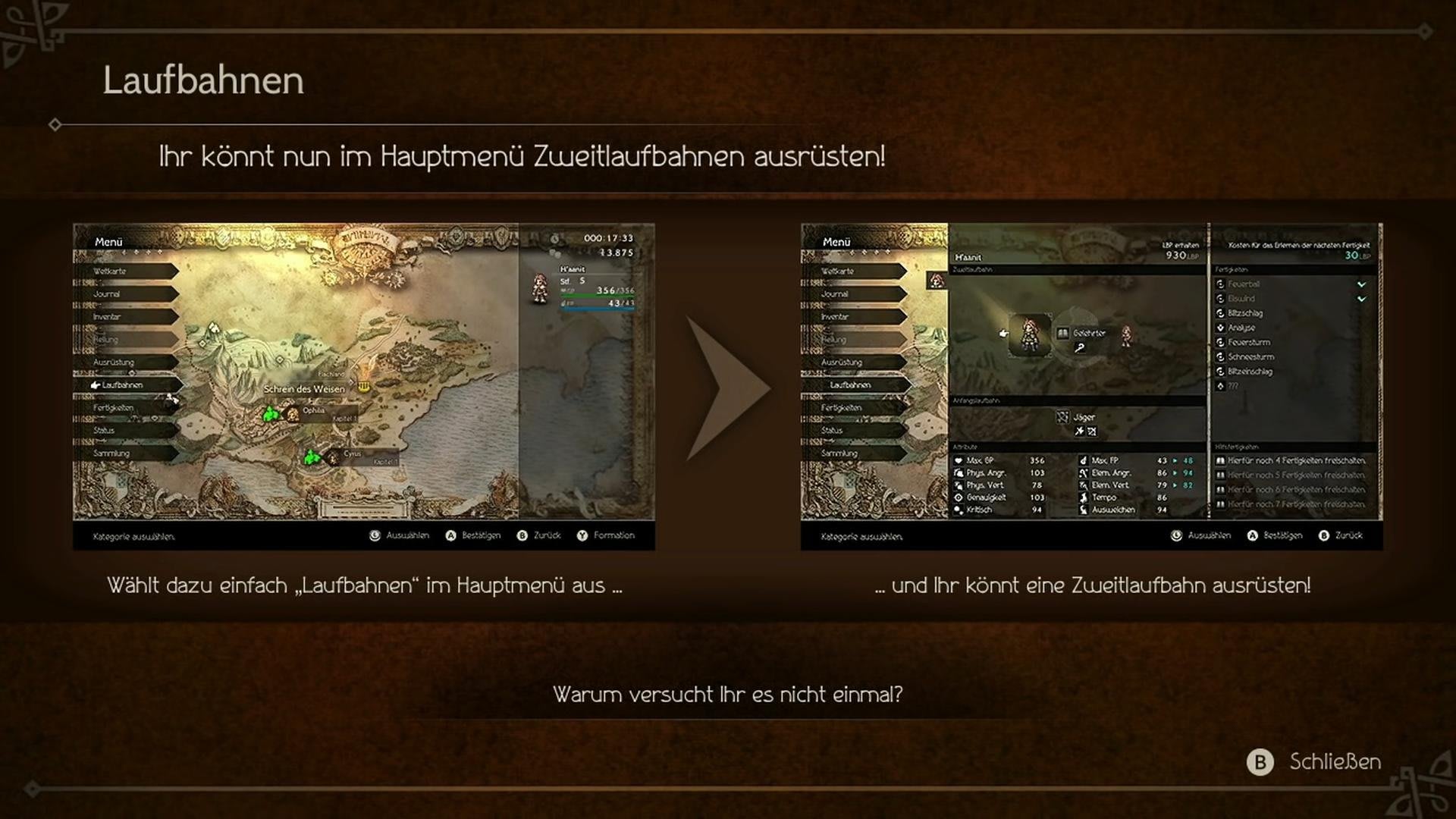 Zweitlaufbahnen sind zudem nicht dauerhaft. Ihr dürft jederzeit zwischen den Zweitklassen wechseln. Aktiviert ihr diese Klassen, erhöhen sich eure Statuswerte, außerdem dürft ihr auf besondere Fähigkeiten zurückgreifen.