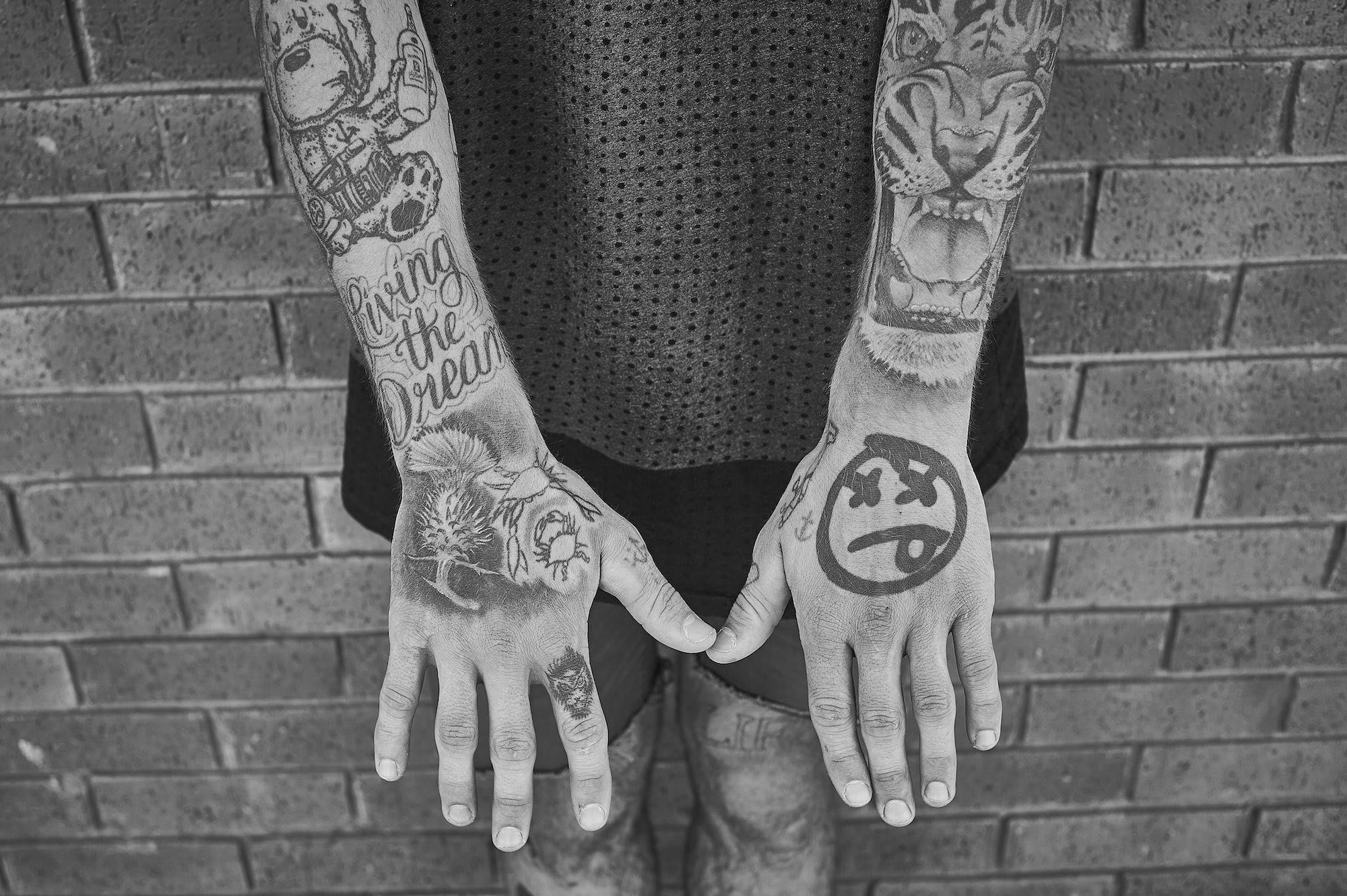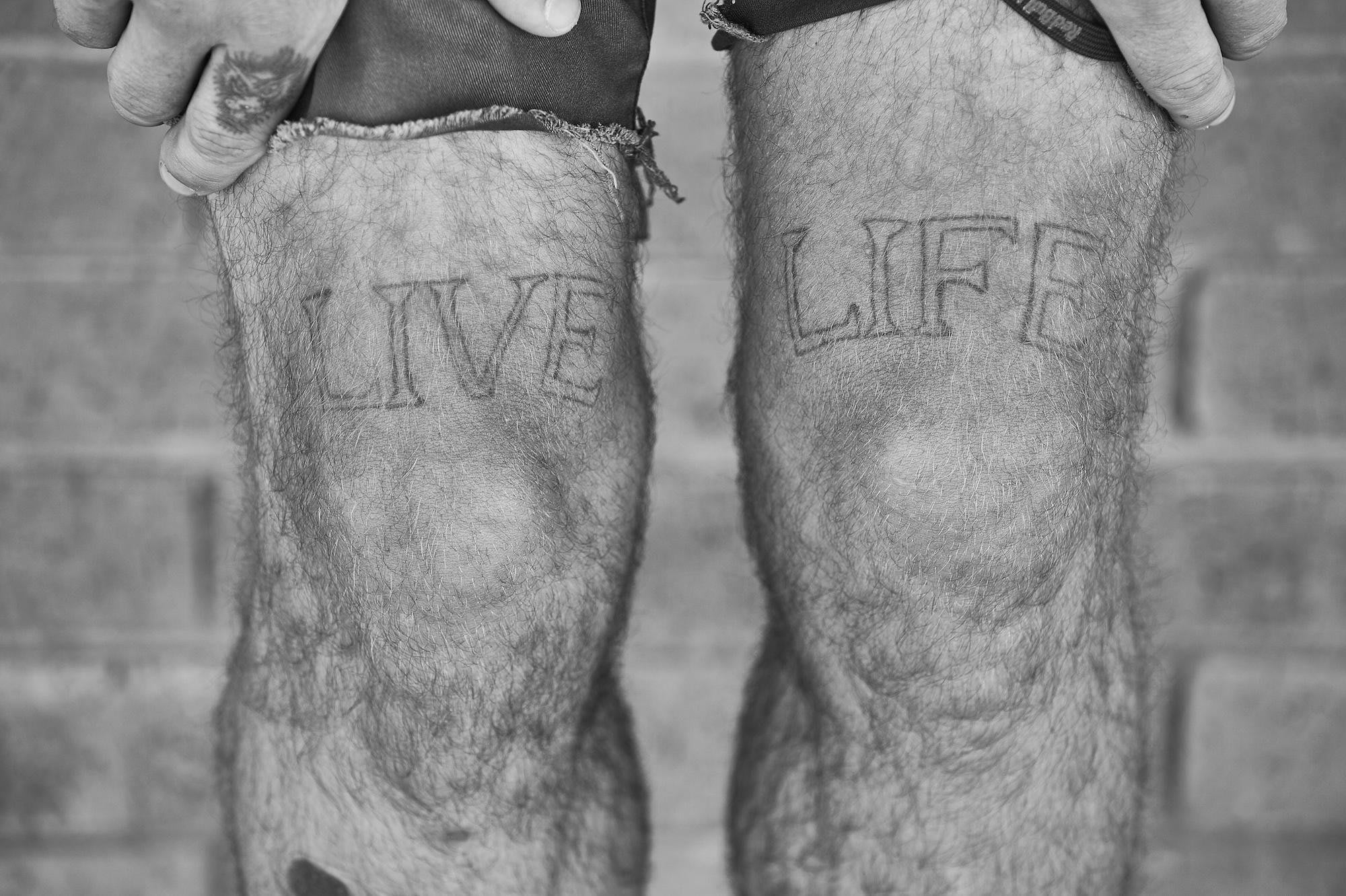Wir haben uns alle in Unit 23 das Live Life Tattoo gestochen. Ich bekam meins im Hinterhof vom Skatepark von einem meiner besten Freunde, Harry Walker. Es war irgendwie schräg, weil wir alle tätowiert wurden und ich wusste nicht genau was ich mir machen sollte. Dann kam mir diese Idee in den Kopf.