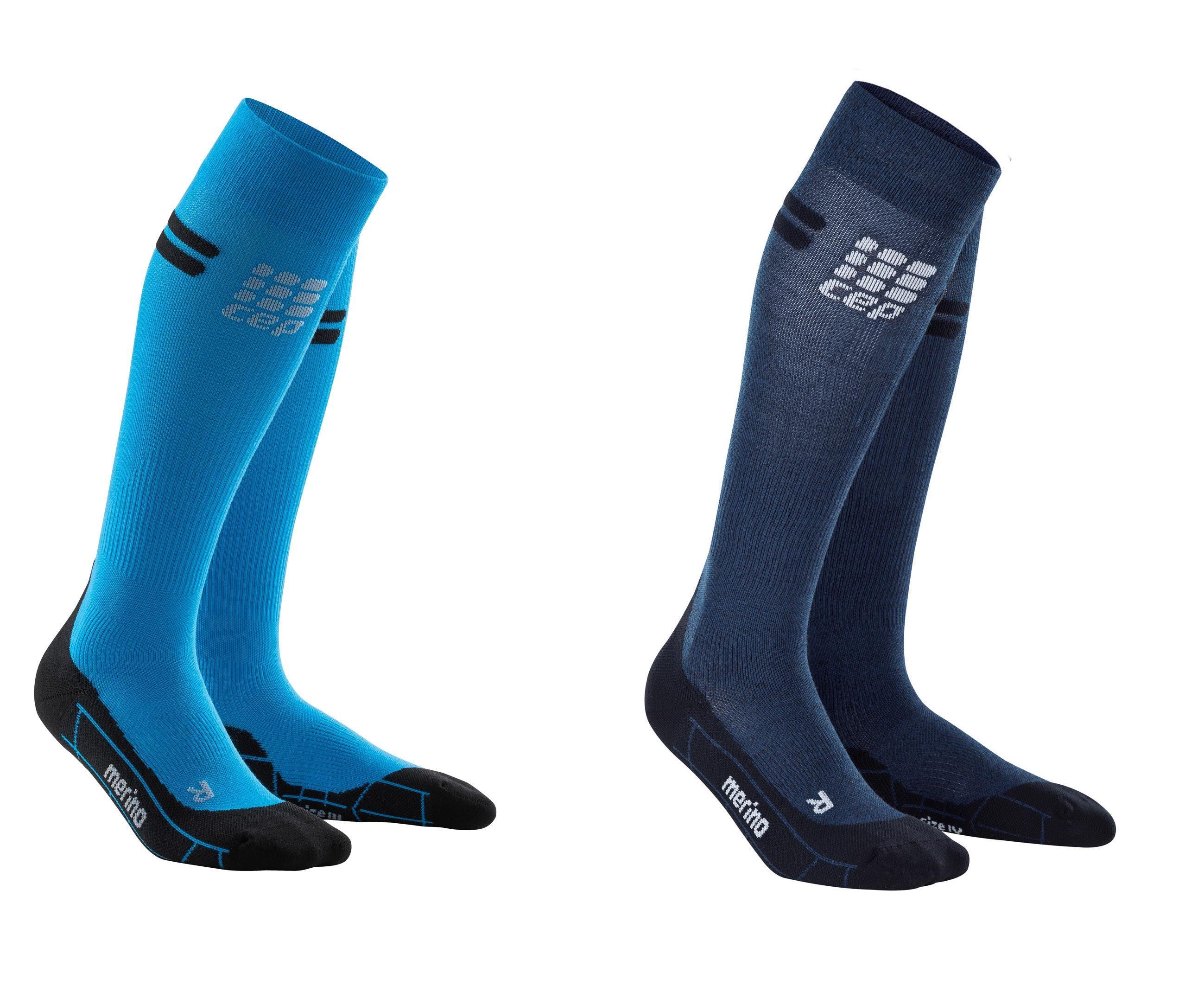 Für das Fußklima eignet sich im Winter vor allem Merino. Deshalb mischt CEP in seine warme Kompressionssocken-Variante auch die Naturfaser. Ansonsten sorgt synthetisches Material dafür, dass die Feuchtigkeit schnell abtransportiert wird und die Socke kompakt sitzt.
