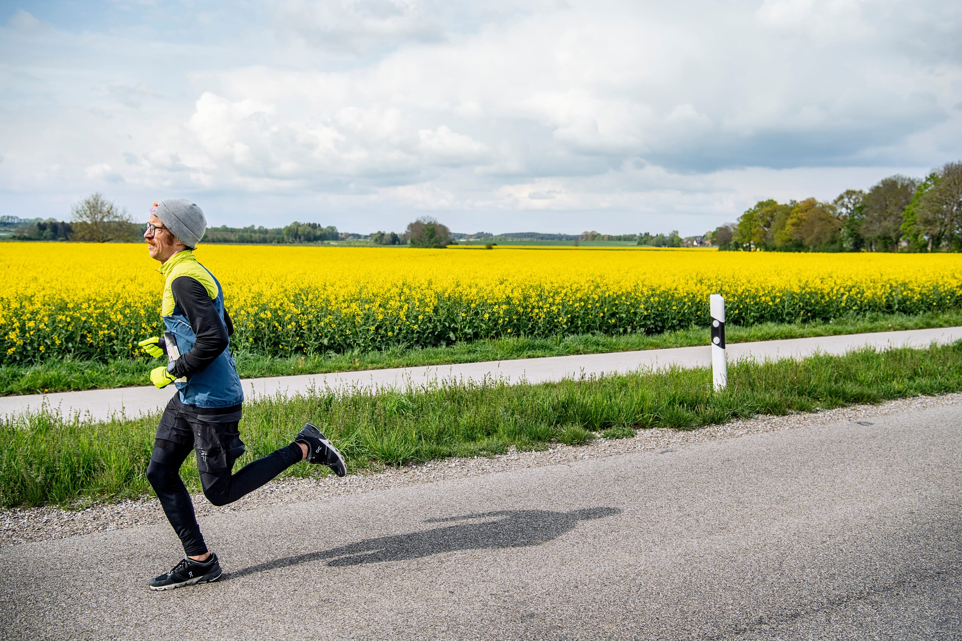 Auf welchen Hersteller du am Ende setzt, ist dabei völlig egal. Der Zwiebellook muss lediglich an die Temperatur angepasst werden, in der du läufst! Für Temperaturen um den Gefrierpunkt empfiehlt Flo Neuschwander sein altbewährtes Dreifach-System: "Bei um die Null Grad laufe ich meistens mit langer Hose und einem dünnen Longsleeve als Baselayer", so Neuschwander. "Darüber kommt dann ein dickeres Longsleeve und darüber eine dünne, wetterfeste Jacke."