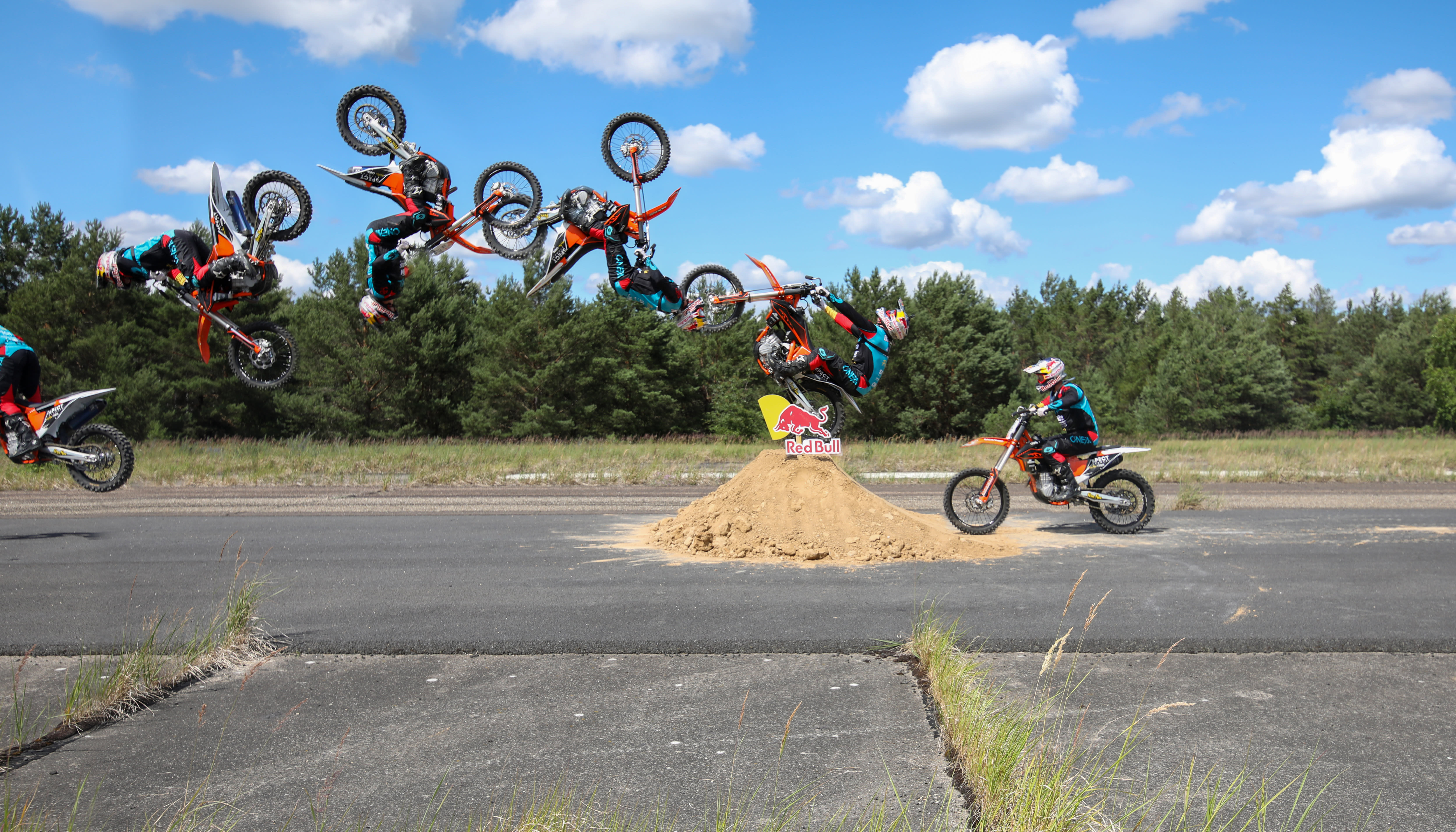 Drei Wochen trainierte Luc Ackermann auf seinem Trainingsgelände in Niederdorla einen Backflip nach dem anderen, um sich auf seinen großen Tag vorzubereiten. Am 12. Juli 2020 um 13.00 Uhr steuerte er schließlich auf den ersten von zehn Dirthügel in Sperenberg zu.