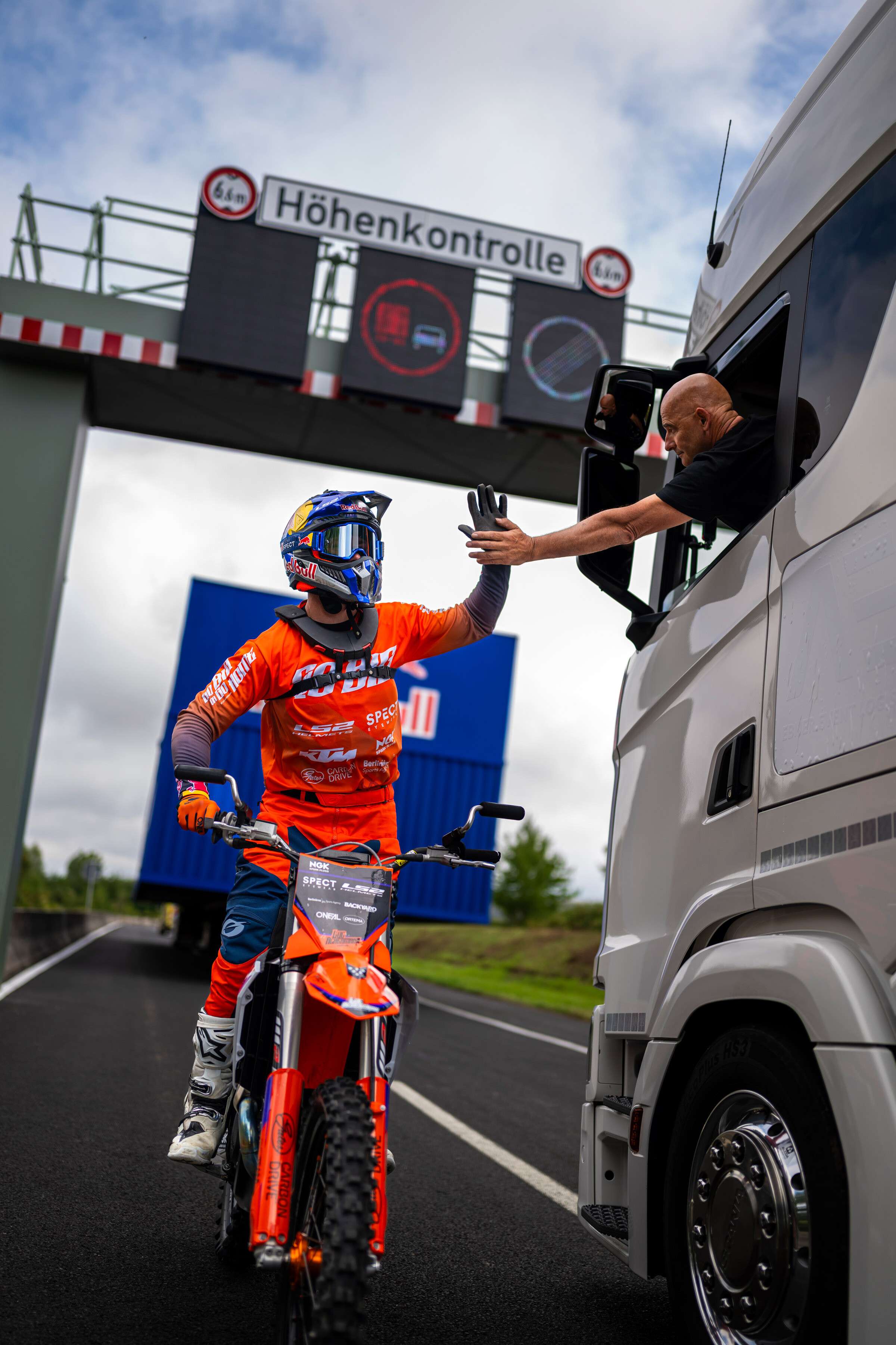 Mit einem Stunt, der Timing, Präzision und mentale Stärke auf ein neues Level hebt, hat Luc Ackermann den wohl am besten getimten Sprung seiner Freestyle-Motocross-Karriere gemeistert. Luc Ackermann ist mit seinem FMX-Bike 40 Meter von einem fahrenden Lkw auf einen anderen gesprungen - mit Tsunami Backflip über eine 9 Meter Hohe Höhenkontrolle: