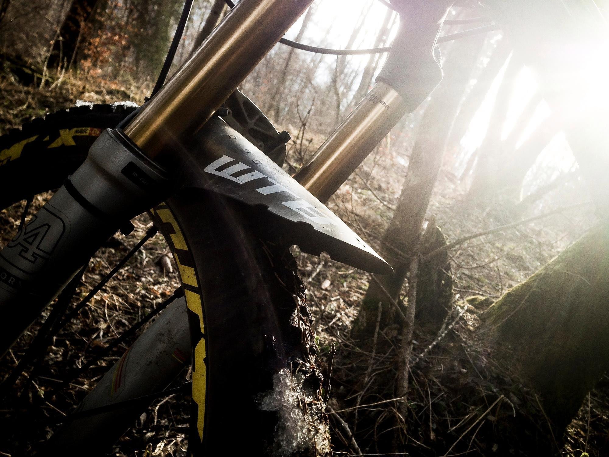Darum solltest du deine Ausrüstung anpassen: wasserdichte Socken und Hose sowie eine winddichte Jacke sind absolut unerlässlich. Außerdem solltest du auf dicke Winterhandschuhe und eine isolierende Kopfbedeckung unter dem Helm nicht verzichten. Ein Kotflügel schützt dich zusätzlich vor herumfliegendem Matsch.