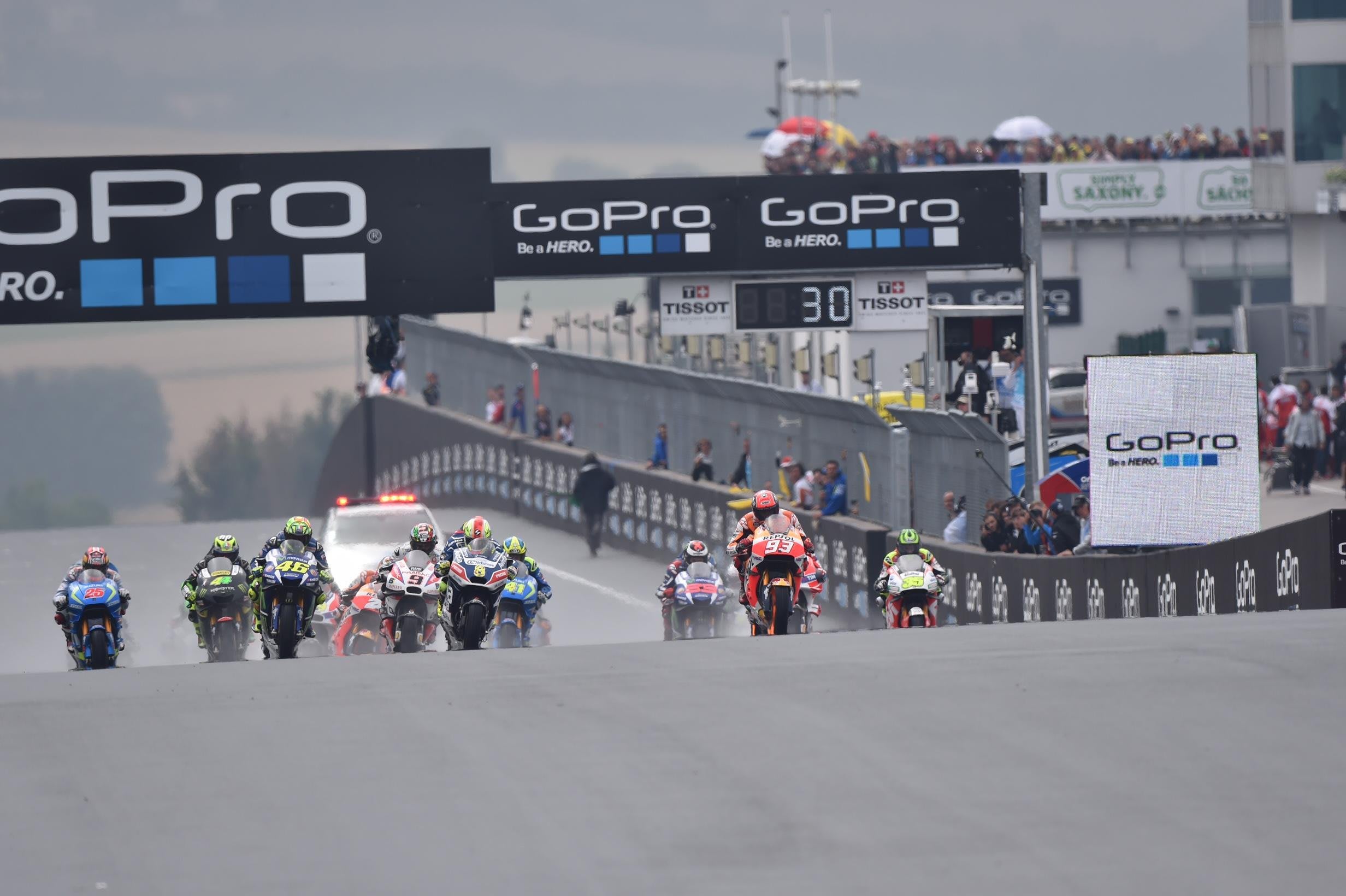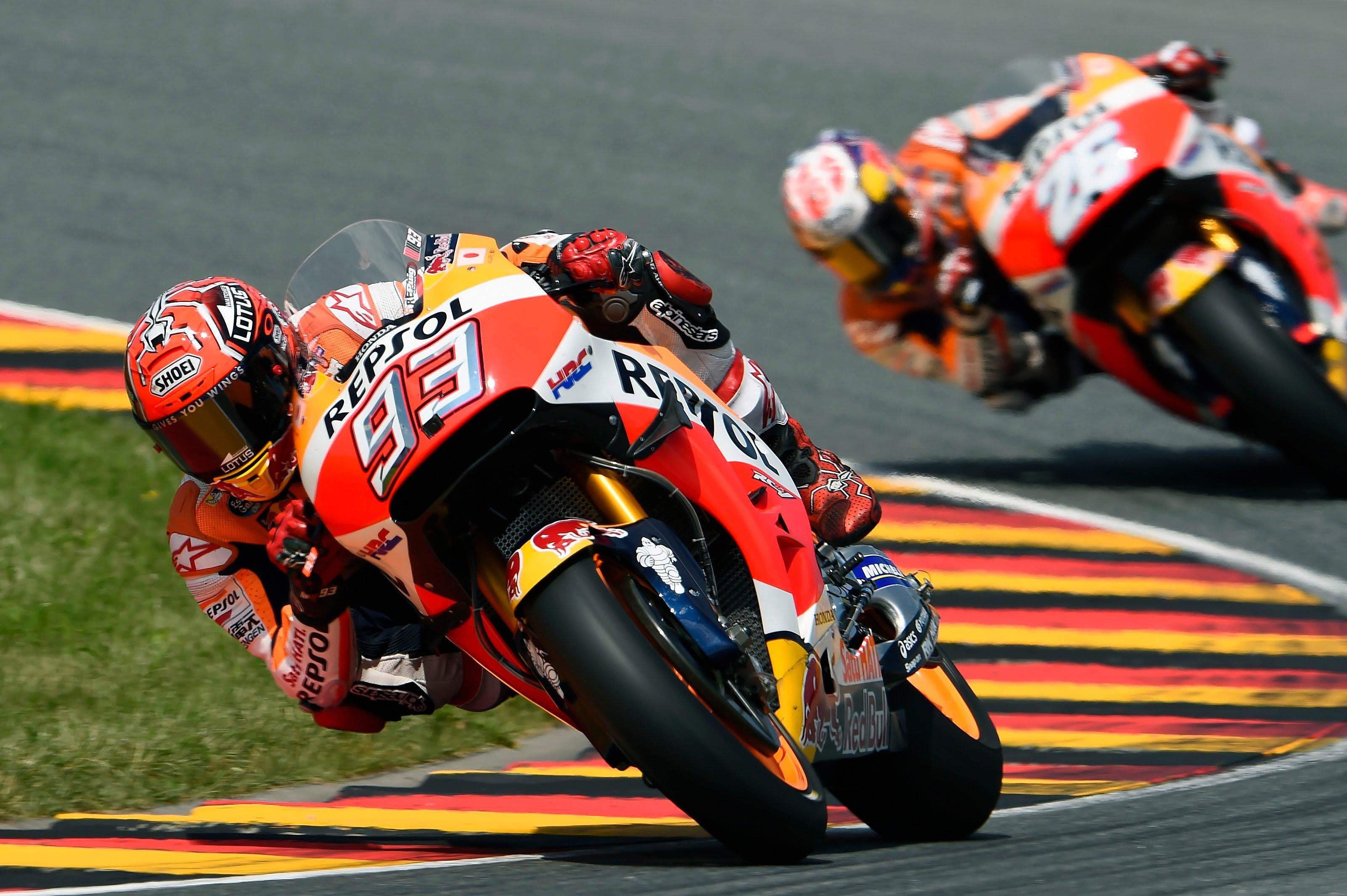 Der Sachsenring und Marc Marquez – das ist die große Liebe. Der Spanier hat den Grand Prix von Deutschland zum vierten Mal in Serie gewonnen und seine Führung in der WM auf 48 Punkte ausgebaut. Auf den Plätzen 2 und 3: der Brite Cal Crutchlow (Honda) und der Italiener Andrea Dovizioso (Ducati).