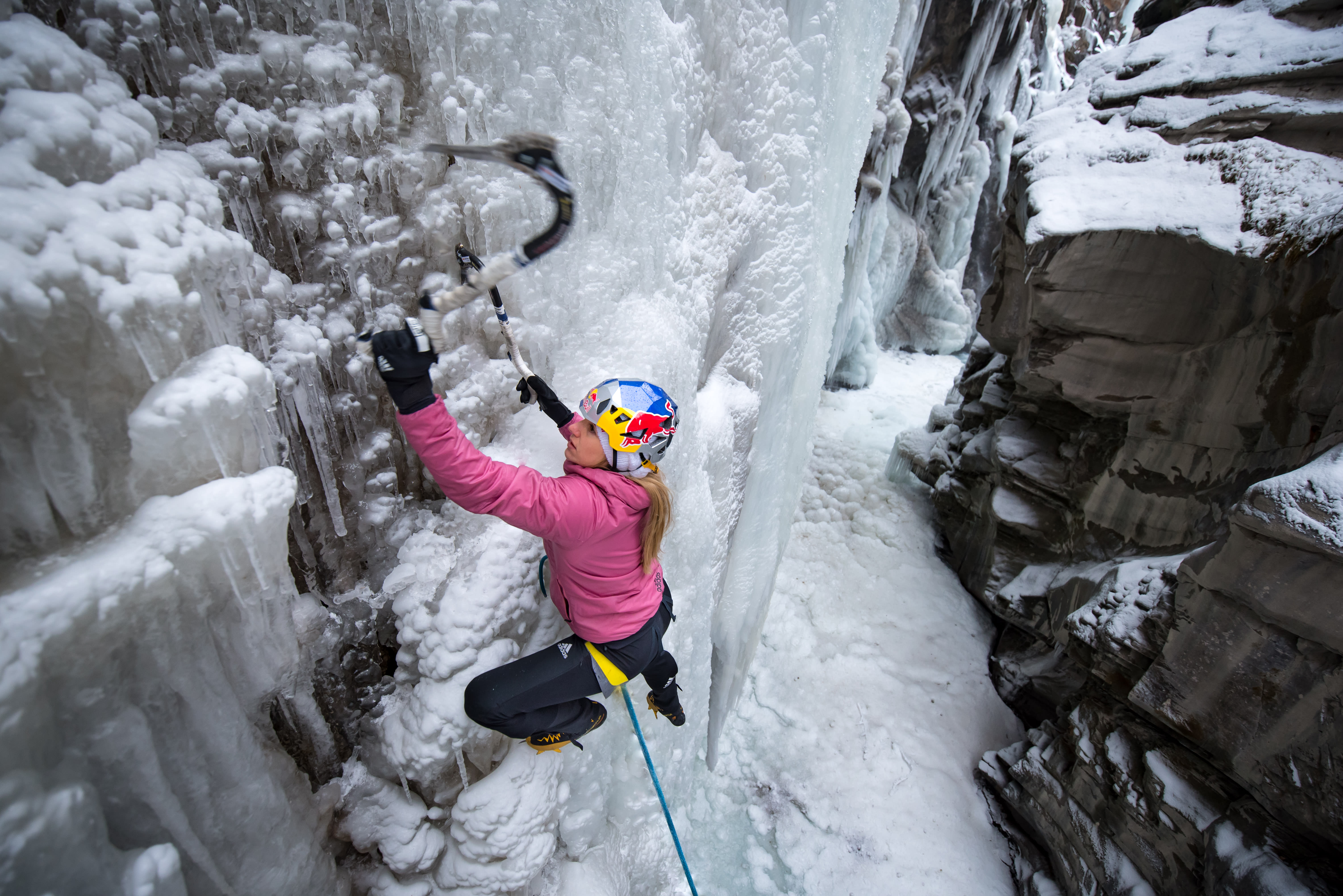 Am Anfang musste Klingler nicht nur besonders auf ihre Füße achten, sondern auch auf ihren Körper, als sie vom Eisklettern zum Felsklettern wechselte. "Es ist wirklich eine Herausforderung, denn obwohl wir beim Eisklettern die gleichen Muskelgruppen benutzen, bevorzuge ich das Trockenklettern", sagt sie. "Man benutzt zwar ähnliche Muskeln, aber es ist trotzdem ganz anders - mit dem Eispickel hat man eine größere Armspannweite und kann kleinere Löcher halten, aber gleichzeitig ist man nicht so direkt am Griff wie beim Klettern; man hat nicht das gleiche Gefühl."