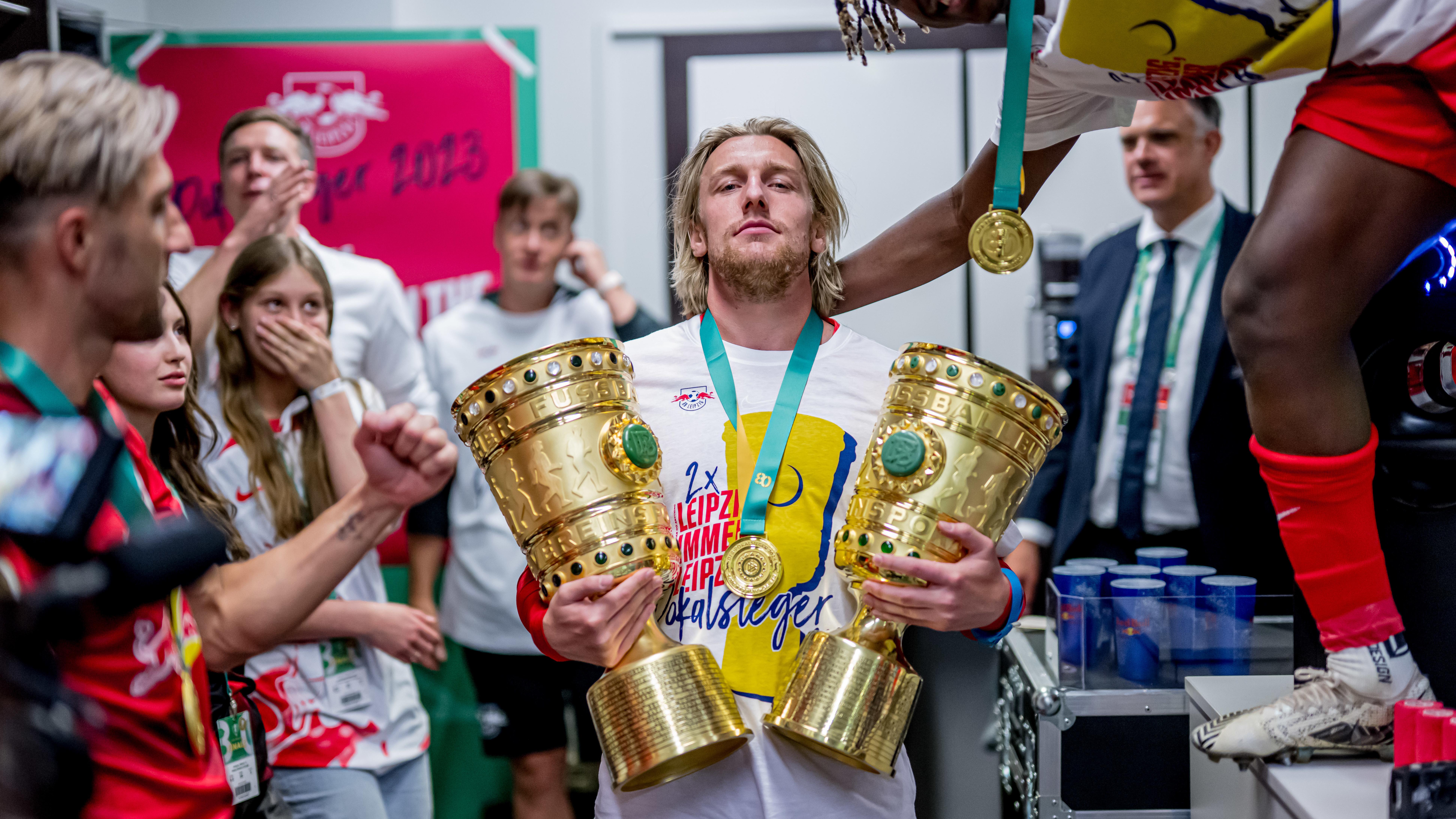 Dagegen half nur: Das nötige Match-Glück und ein Gamechanger von der Bank. Yussuf Poulsen erzielte selbst keines der beiden Tore, schaffte aber die Räume, die ein Torjäger der Form, Marke und Raffinesse eines Christopher Nkunku zu nutzen wusste. Nach dem Abpfiff und der Trophy-Übergabe zog es die Pokal-Helden in passenden Sieger-Shirts ("Zweimal Leipzig, immer Leipzig) in den „Club Theater“ am Potsdamer Platz.