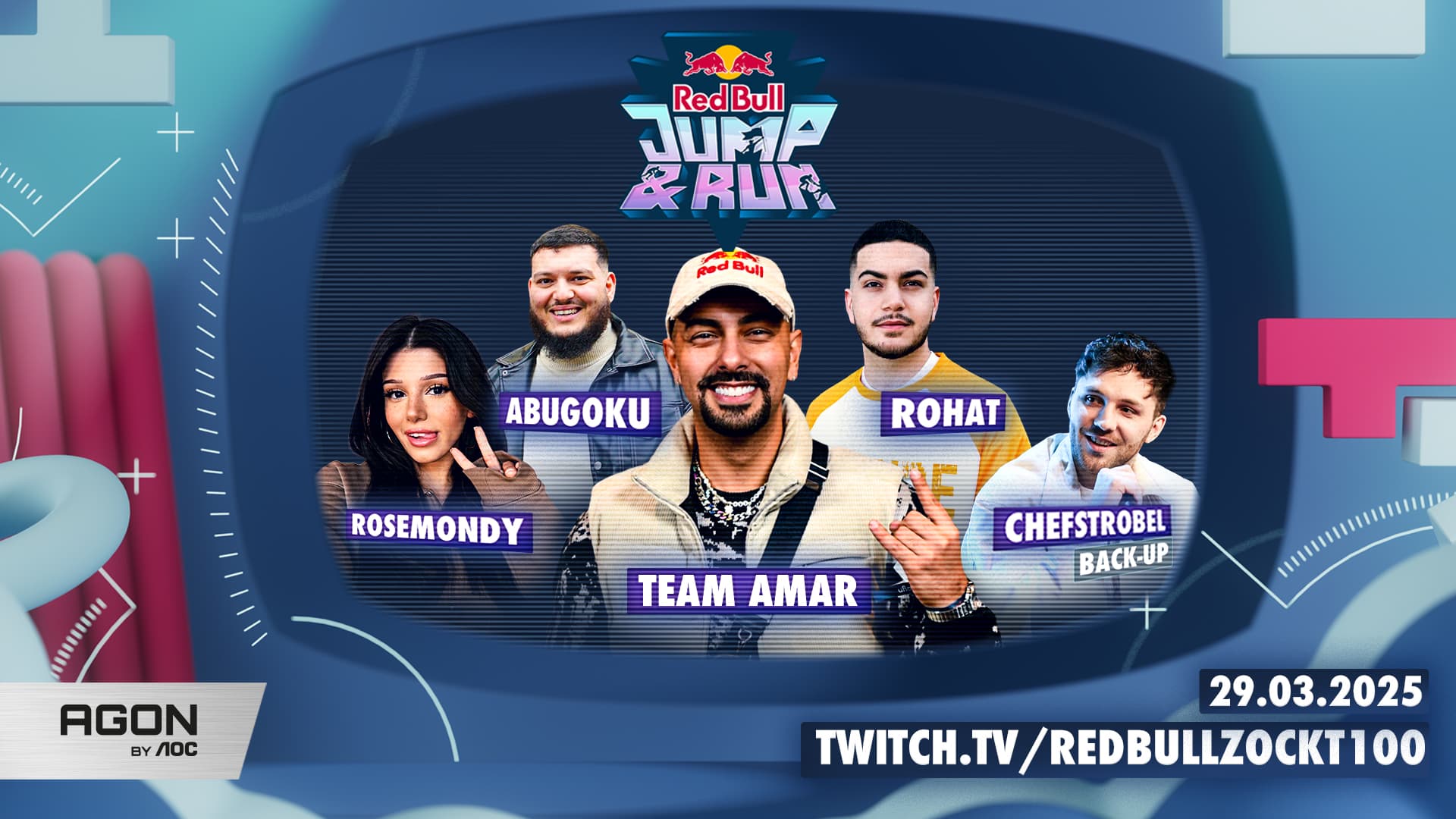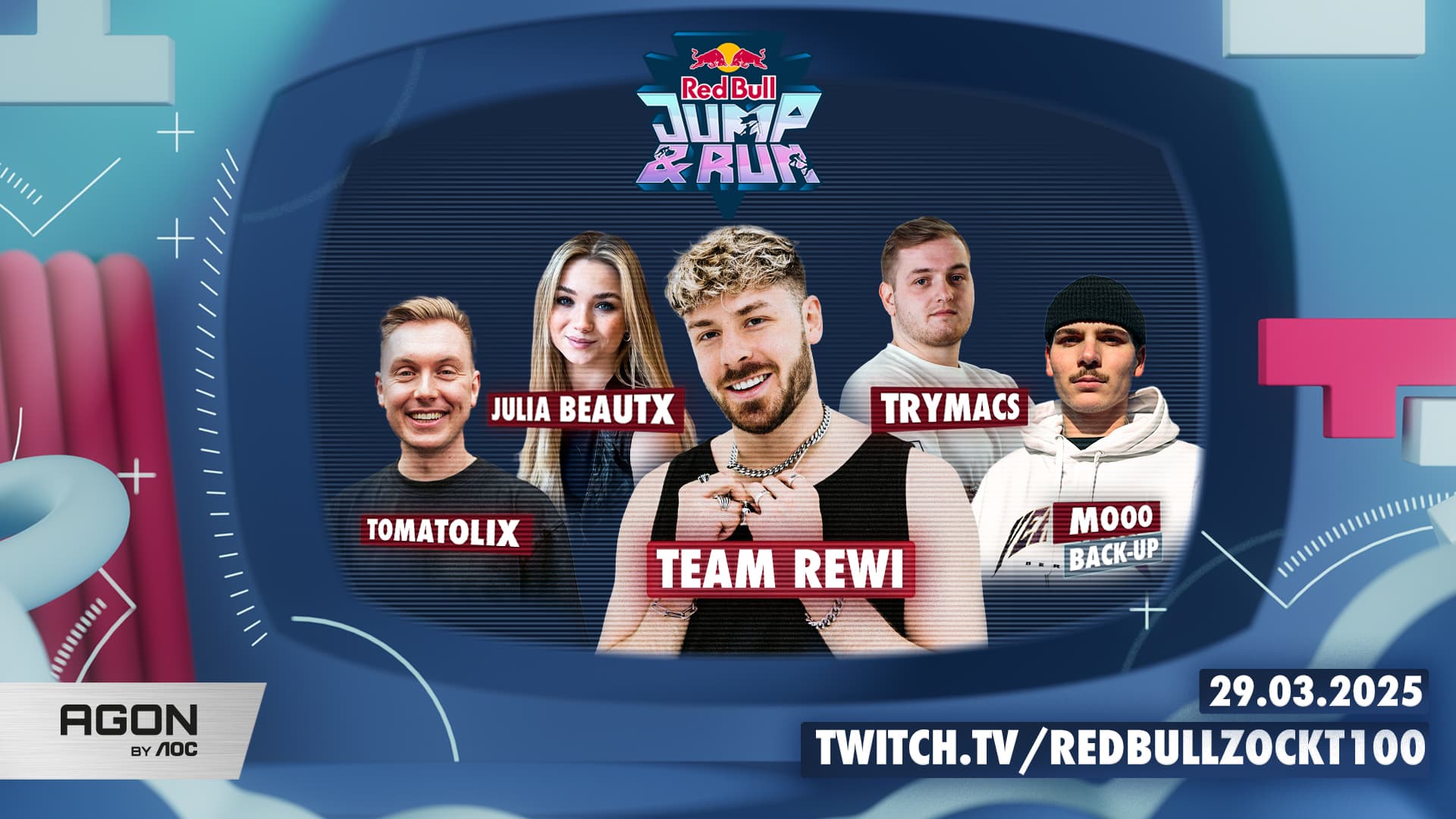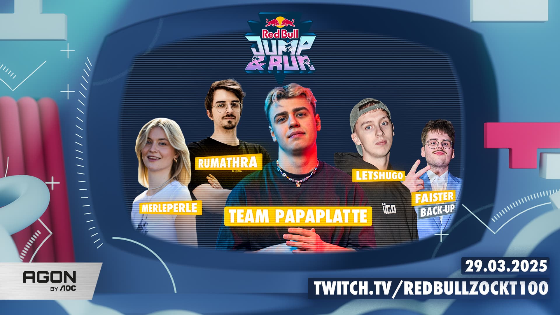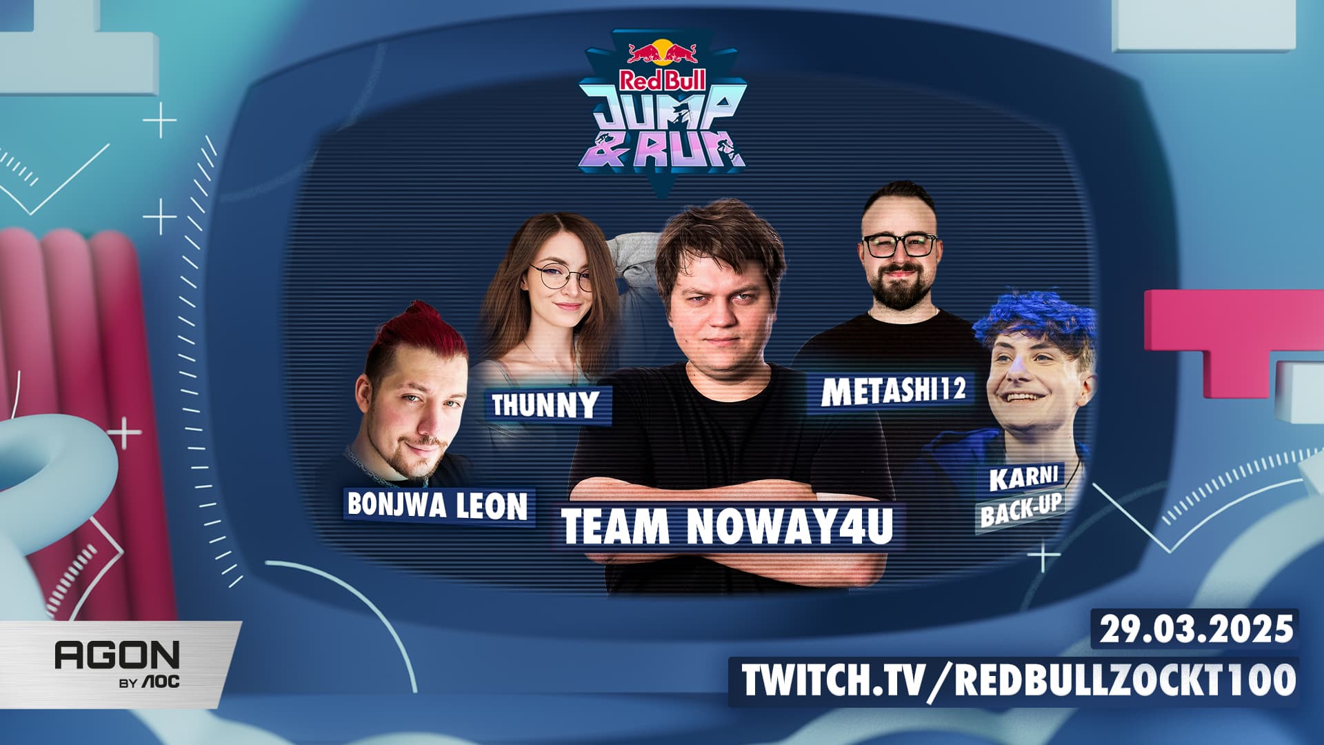 Endlich ist es so weit! In knapp zwei Wochen stellen die Team-Captains Amar, Papaplatte, Rewinside und Noway4u ihr Können im wahrscheinlich härtesten und coolsten Creator Obstacle Run mit Gaming-Twist unter Beweis: Red Bull Jump & Run steigt am 29. März 2025 in den MMC Studios in Köln.
