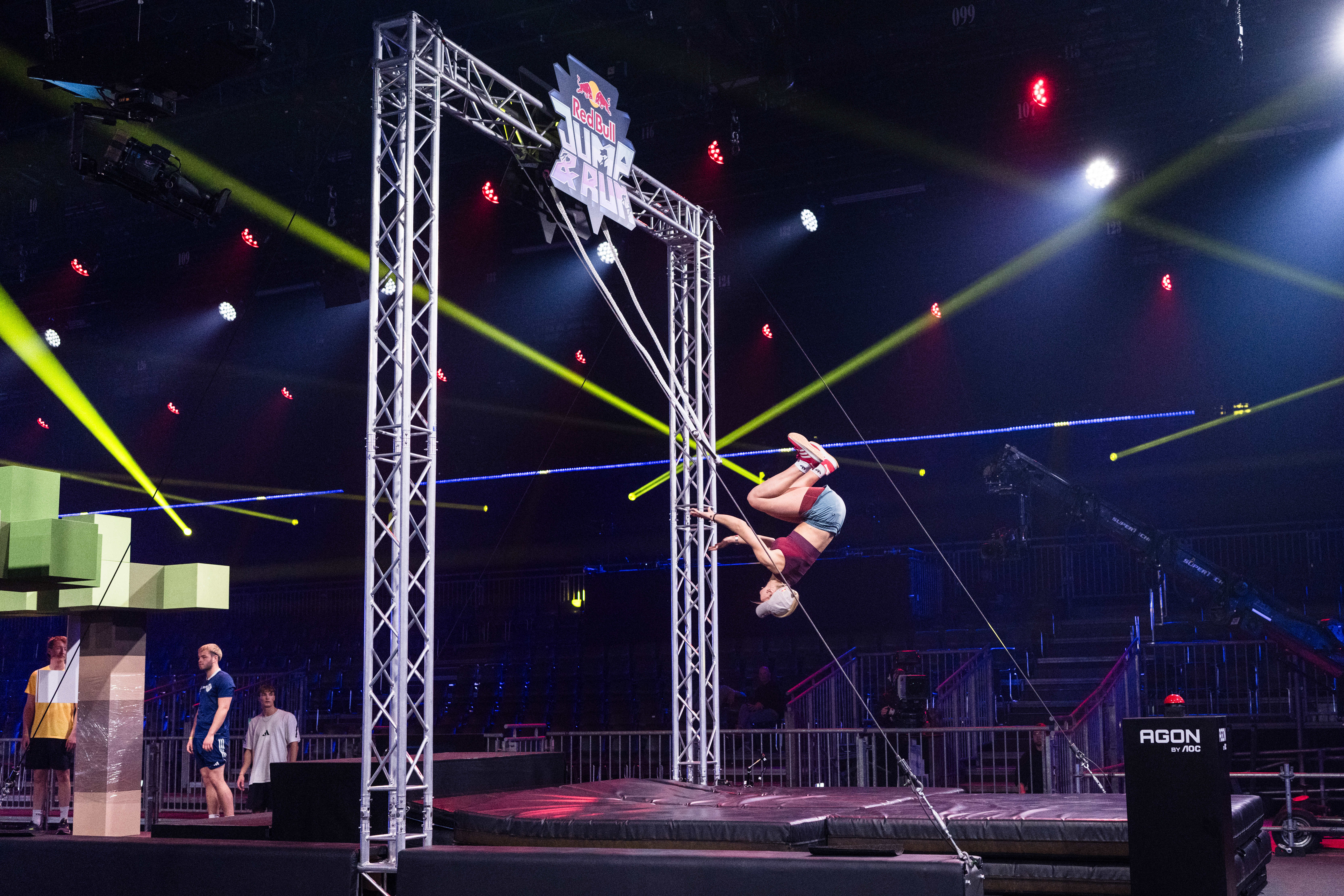 Während das Publikum begeistert die Tribünen stürmt, geht es für die Creators an das Warm-up. Denn eines ist klar: Red Bull Jump & Run wird kein Zuckerschlecken.