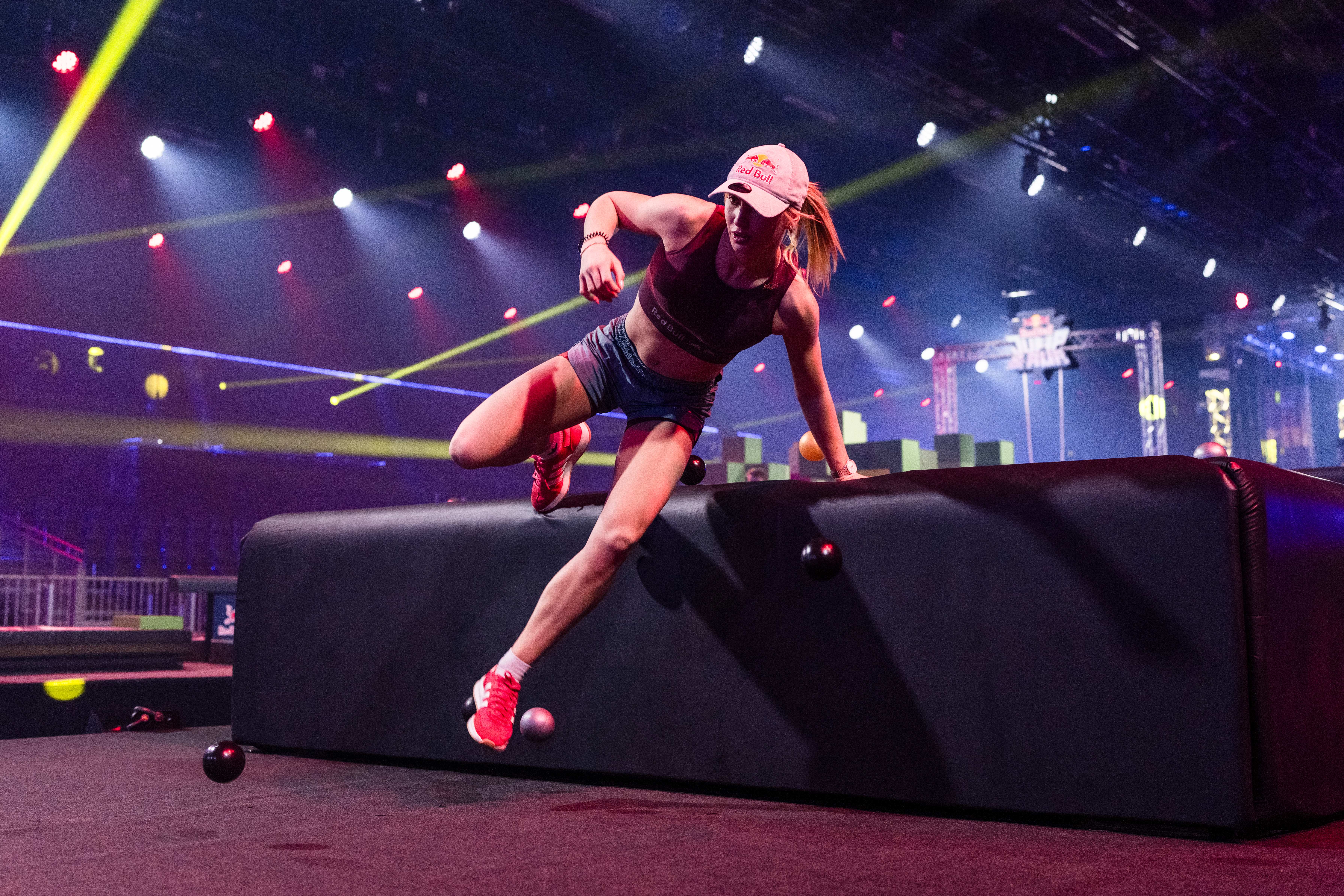 Bevor die Creators auf die drei abwechslungsreichen Welten losgelassen werden, mussten diese natürlich von einem Profi auf Herz und Nieren überprüft werden. Freerunning-Profi Noa Diorgina channelte ihre innere Prinzessin Peach oder Celeste... und hatte sichtlich Spaß mit unserem Obstacle Run mit Gaming-Twist.