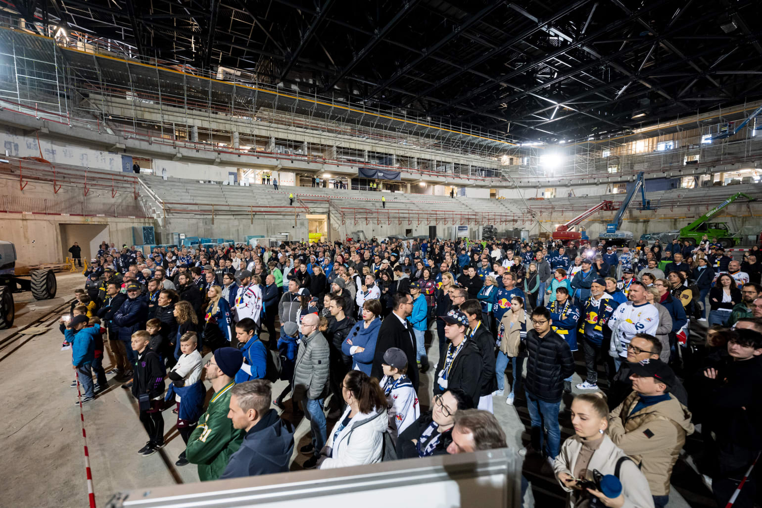 Ende Oktober luden die Red Bulls zur ersten Sneak Preview in die neue Heimat. Binnen 17 Minuten waren die 250 Tickets für den SAP Garden vergriffen. Kurzerhand organisierten Manager Christian Winkler und Co. ein weiteres Kontingent für 350 Fans. Was nach aktueller Kapazität gleichzusetzen ist mit: „Sold Out“. Der langjährige Stadionsprecher Stefan Schneider ließ es sich nicht nehmen, vor 600 Fans das erste „EHC“-Echo anzustimmen.