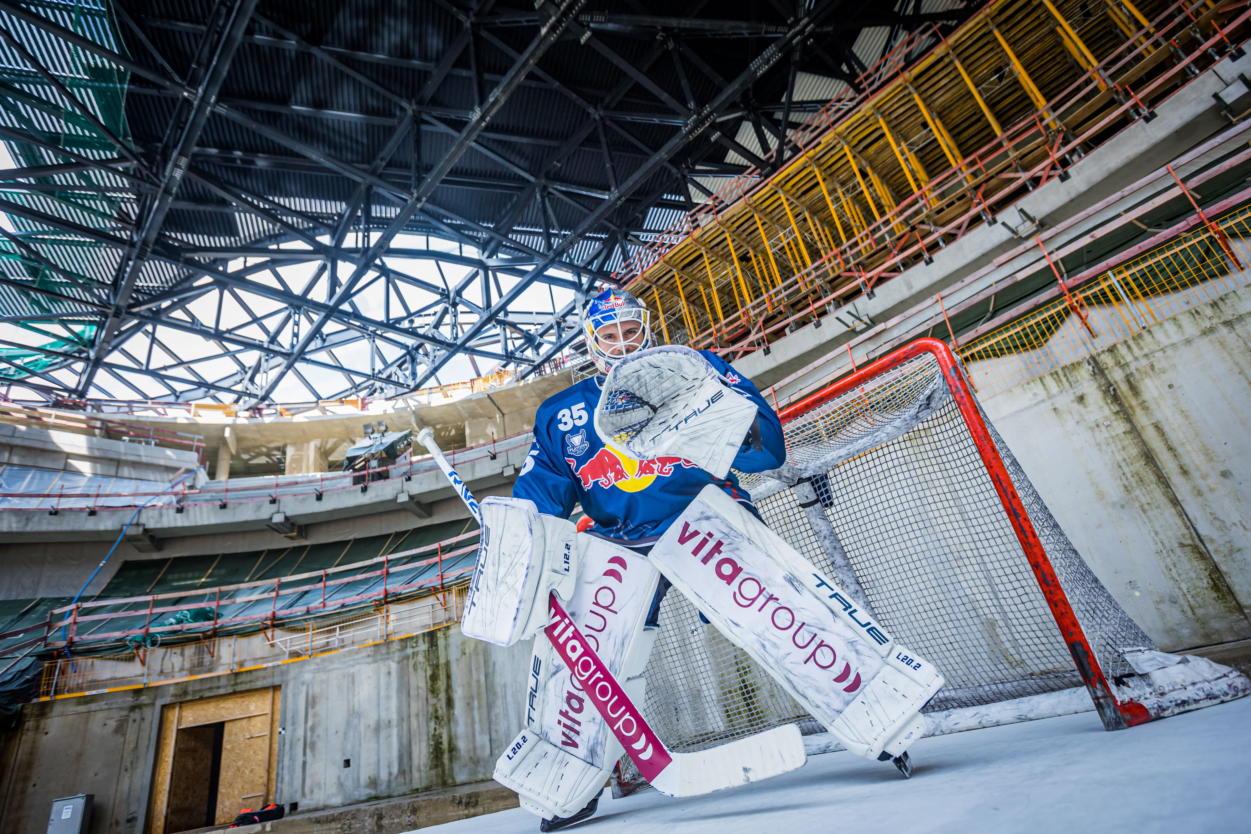Von wegen Faulenzen in der Off Season! Im Anschluss an seine Premierensaison im Trikot der Red Bulls hatte Dominik Bittner noch einen offenen Task auf seiner To Do-List. Der Verteidiger kam zur Baustelle, um die letzte Lisene zu verschrauben. Fazit: Mit dem Akku-Schrauber kann Bittner ebenso fabelhaft umgehen wie mit seinem eigentlichen Arbeitsgerät auf dem Eis.