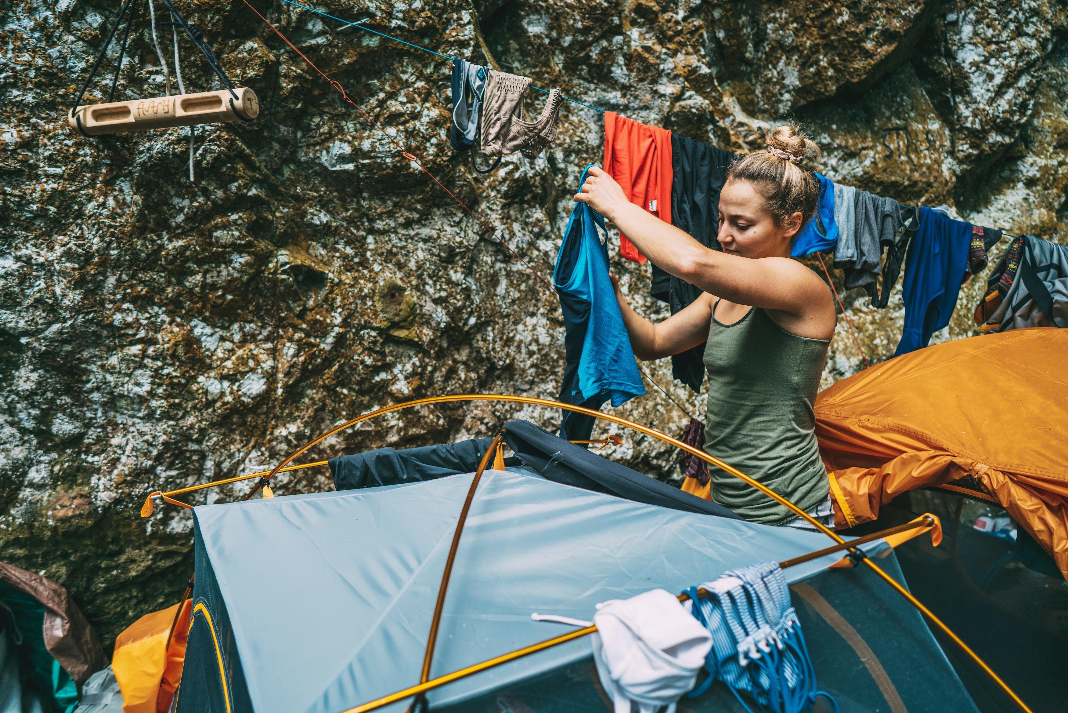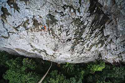 Wir haben viele Tage aktiv an der Wand verbracht und versucht, uns durch den nassen Fels zu kämpfen, Lines zu besprechen und darauf zu hoffen, dass es irgendwann zu regnen aufhört.