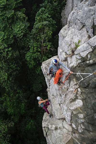 Ich bin enttäuscht darüber, dass wir die Leve Leve nicht frei klettern konnten, dafür weiß ich, dass wir unter diesen Umständen die bestmögliche Entscheidung getroffen haben (sogar die Einwohner meinten, das sei das schlechteste Wetter seit vielen Jahren). Ich bin so dankbar dafür, dass wir überlebten und unsere Geschichte erzählen können. Immerhin sind wir die ersten Frauen, die auf solch einem verrückten Feature gestanden sind, das uns so viel abverlangt hat.