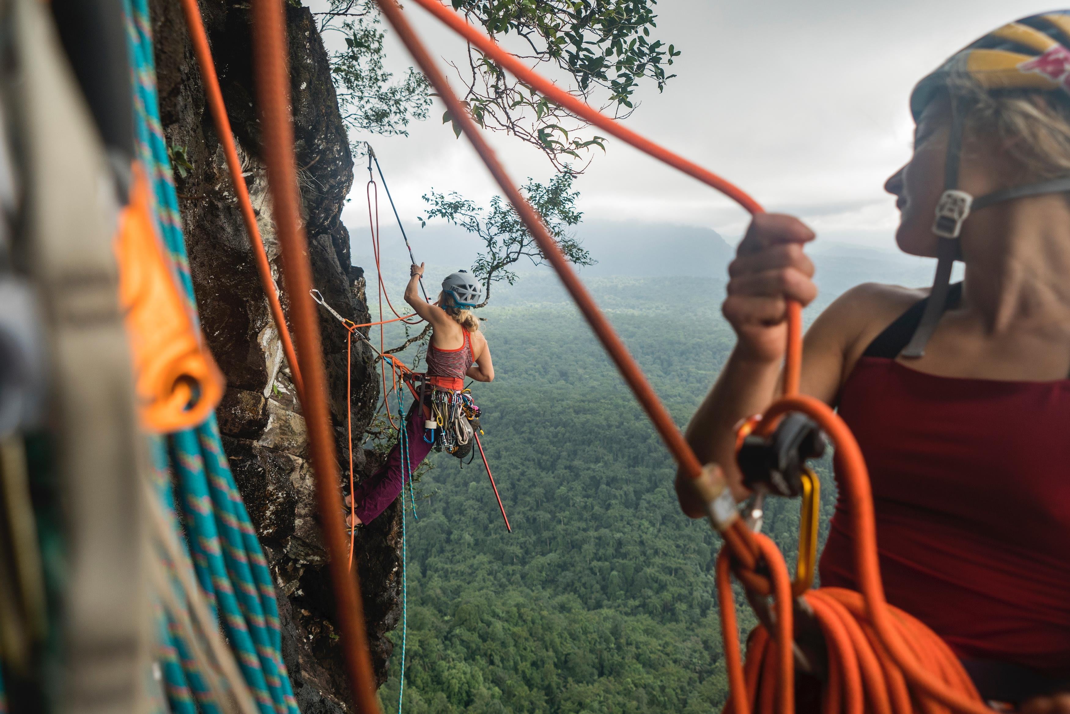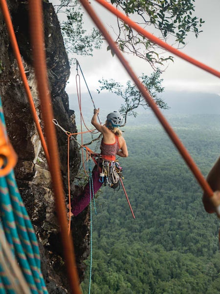DiGiulian ist bereit, Grenzen zu überschreiten. In guter Gesellschaft geht das noch viel besser. Gemeinsam mit ihrer Kletter-Kollegin Angela Vanweermisch und der Fotografin Savannah Cummins machte sie sich zu einem dreiwöchigen Abenteuer auf, um als erste Frauenen in der Geschichte die berüchtigte Leve Leve-Route (5.14a) auf dem Pico Cão Grande zu bezwingen. Natürlich läuft da nicht immer alles nach Plan - vor allem dann, wenn es um das Wetter geht.