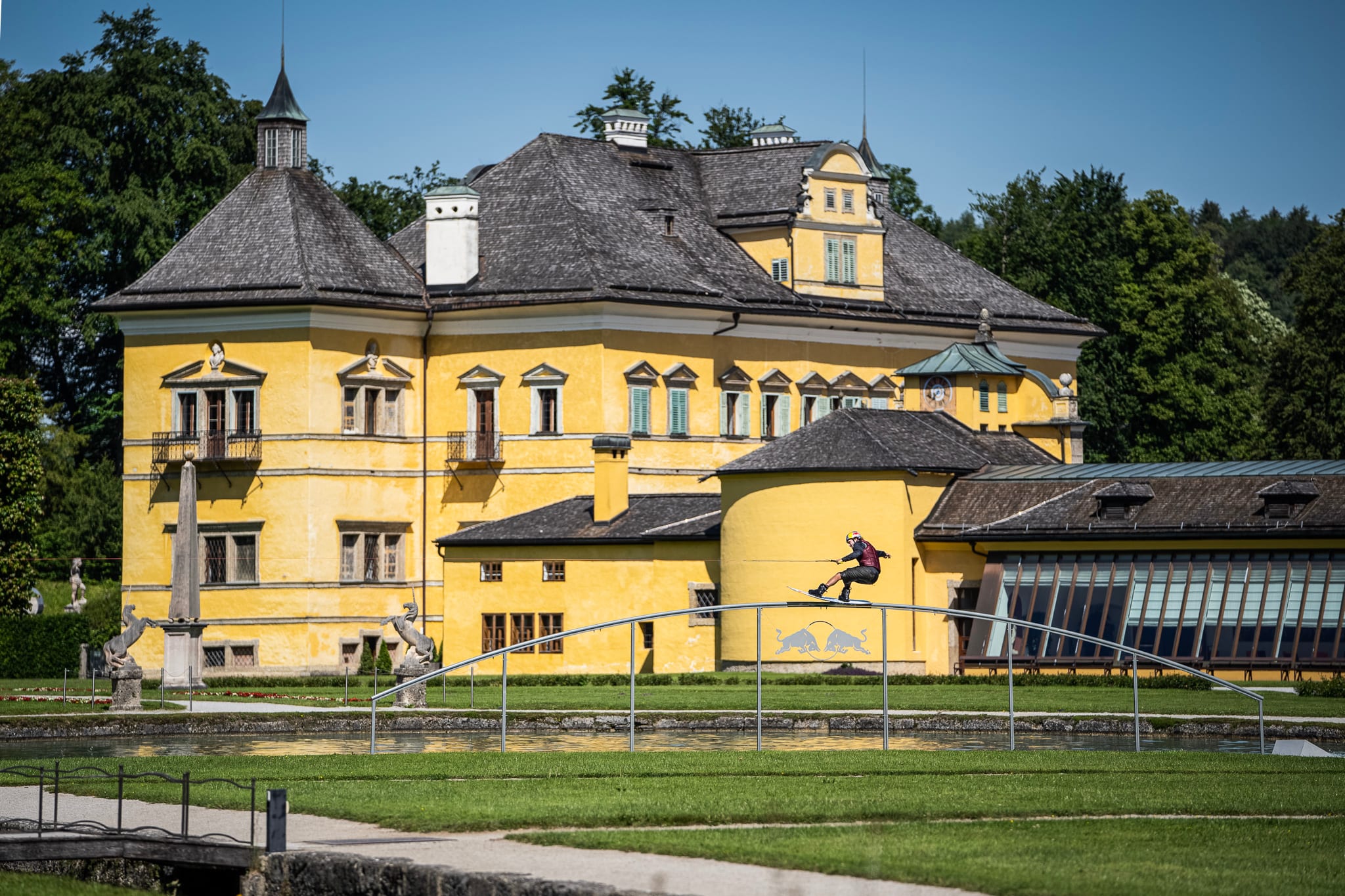 Dom Hernler bringt dich an Orte, an denen niemand an Wakeboarden gedacht hätte. Berühmte Orte wie Schloss Hellbrunn, Schloss Leopoldskron oder der Mirabellgarten werden zu Doms Spielplatz.