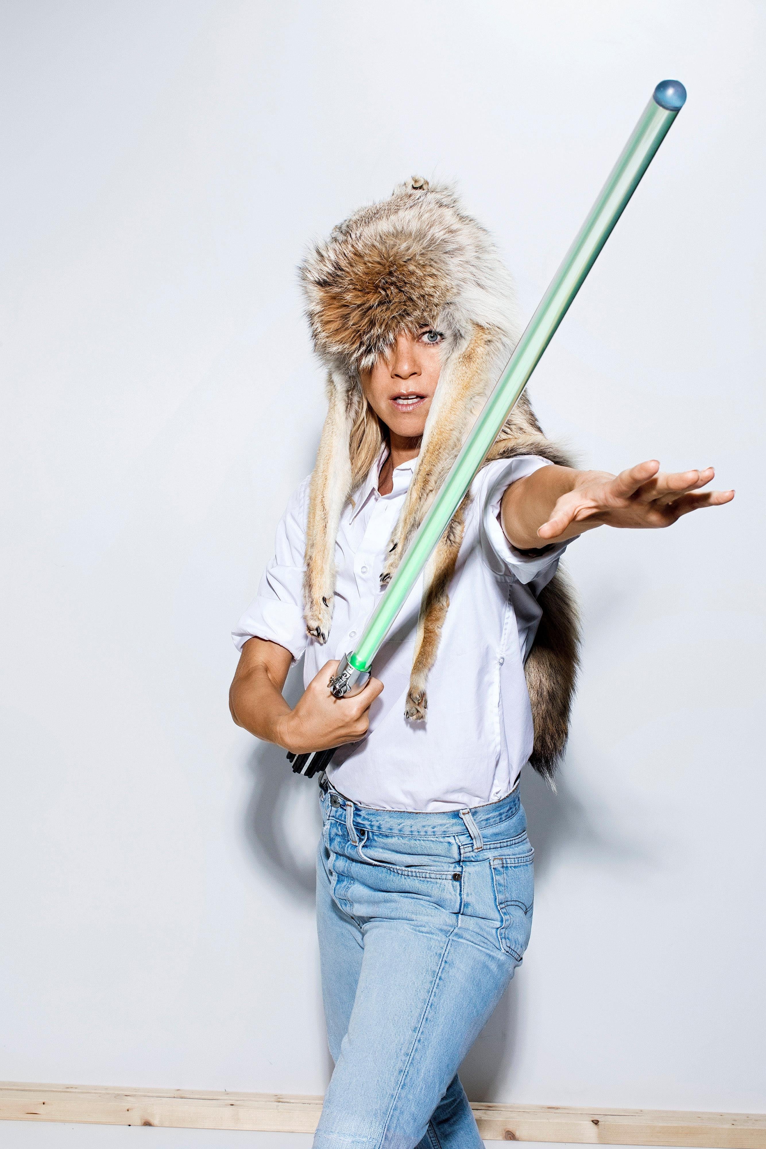 Für unsere Fotoproduktion wirbelte sie mit einem Laserschwert herum, versuchte einen Kopfstand und tanzte durchs Studio. Nebenbei erklärte sie uns ihr Lebensmotto: lebenslange Neugierde. Insofern die perfekte Kandidatin für unser Fragenfeuerwerk über den Sinn des Lebens, Katzen, die Zombie-Apokalypse – und was man sonst so über jede Person, die man neu kennenlernt, wissen sollte.