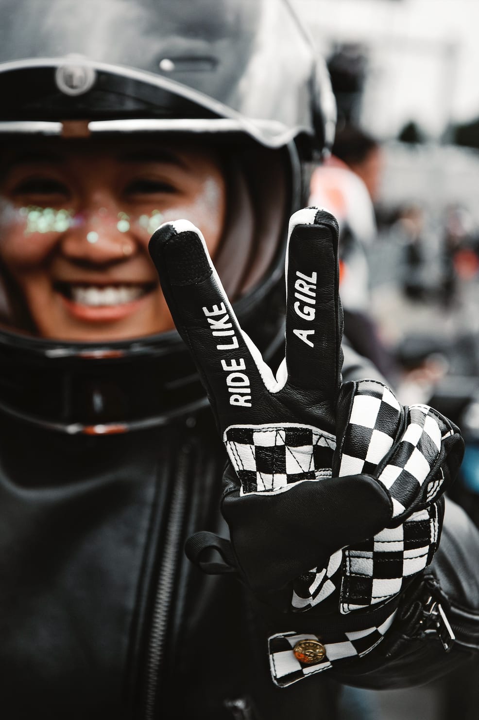 Jede Generation ist vertreten und jeder Stil zu sehen – von schickem Pariser Retro-Glamour bis hin zu Tattoos im Gesicht. Was uns das sagt? Alle Frauen sind willkommen. Dieses Zusammengehörigkeitsgefühl war es auch, das die in Kanada geborene und in Berlin lebende Musikerin Yvonne Ducksworth zu den Petrolettes brachte. „Als farbige Frau bin ich sehr vorsichtig, was die Teilnahme an Biker-Veranstaltungen angeht, und ich bin mir bewusst, wie die Leute mich angucken. Aber als ich 2016 zum ersten Petrolettes Festival kam, bin ich fast in Tränen ausgebrochen! Ich stand einfach nur still da, war überwältigt, nahm alles in mich auf. Ich dachte: Endlich habe ich meine Crew gefunden.“