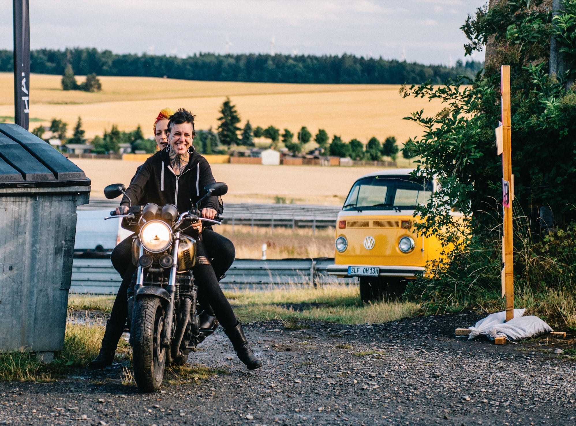 Diesen Vibe spürt man auch auf dem Festival. Die Atmosphäre ist gechillt. Ineke und Margriet, zwei Freundinnen, die aus den Niederlanden angereist sind, teilen die Liebe zum Motorradbau. Ineke, 62, ist eine angesehene Bauerin, Gründerin der niederländischen Offroad-Gruppe EnduroCat. Unter Inekes Anleitung hat Margriet, 32, kürzlich eine Yamaha XJ 900 von einem, wie sie es nennt, „Alte-Herren-Bike“ in ein geländetaugliches Motorrad umgebaut. Die beiden Frauen arbeiten in Inekes Garage; in der „Frauenhöhle“, wie Ineke sie nennt. „Und da gibt es keinen Bierkühlschrank“, sagt sie.