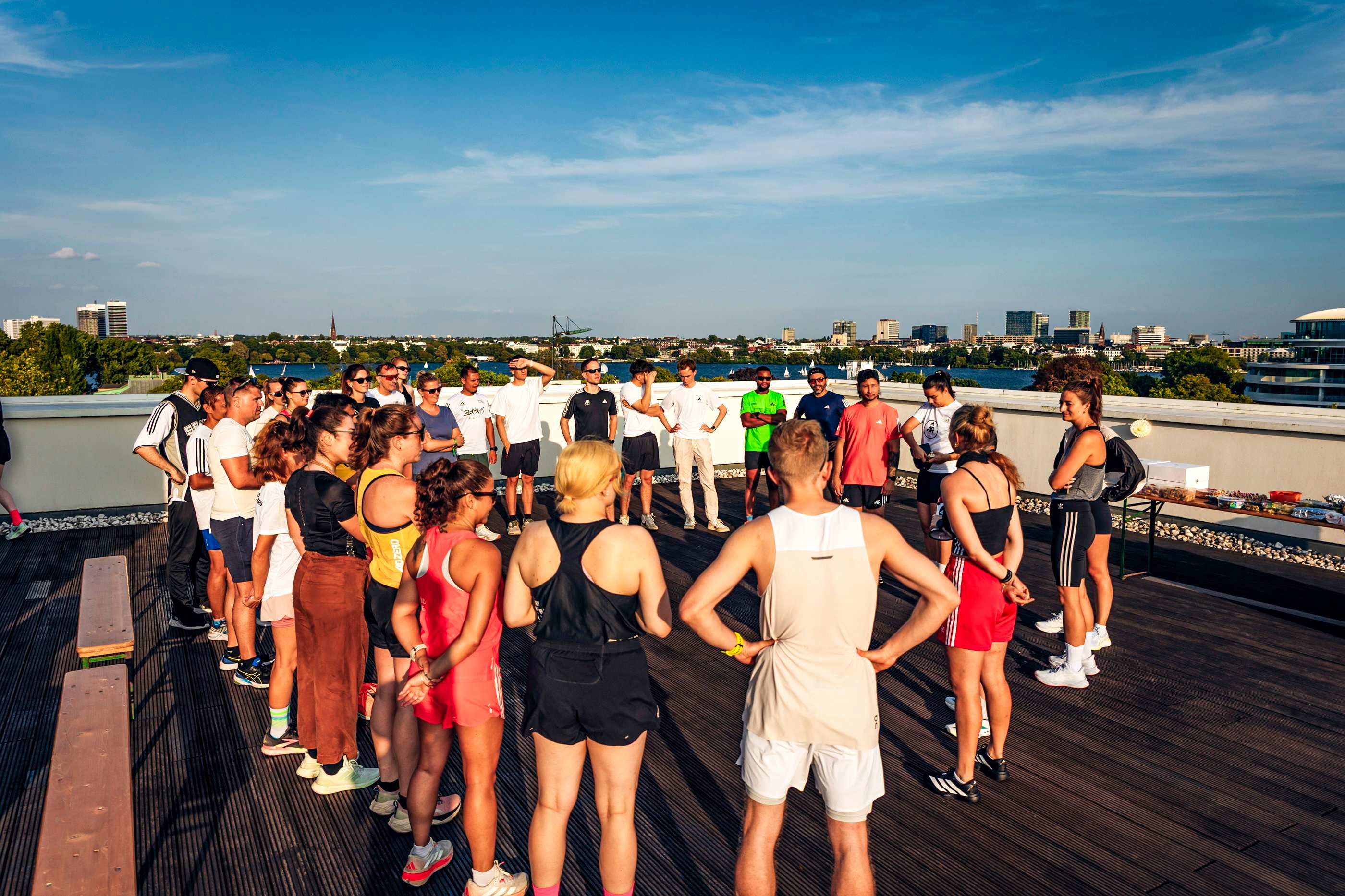 Viele Run Clubs entstanden während der Pandemie, weil Laufen zeitweise als fast einzige Sportart erlaubt war. Für die adidas Runners Hamburg, die es schon seit zehn Jahren gibt, hatte die Corona-Zeit einen anderen Effekt: „Dass damals so viele Laufclubs entstanden sind, hat uns auch noch mal geholfen, unsere Position in der Laufszene klarer zu definieren“, sagt Dana Stamp, Captain der adidas Runners Community. „Wir sind nicht der Laufclub für reine Anfängerinnen und Anfänger, wir wollen die Leute schon ein bisschen weiterbringen.