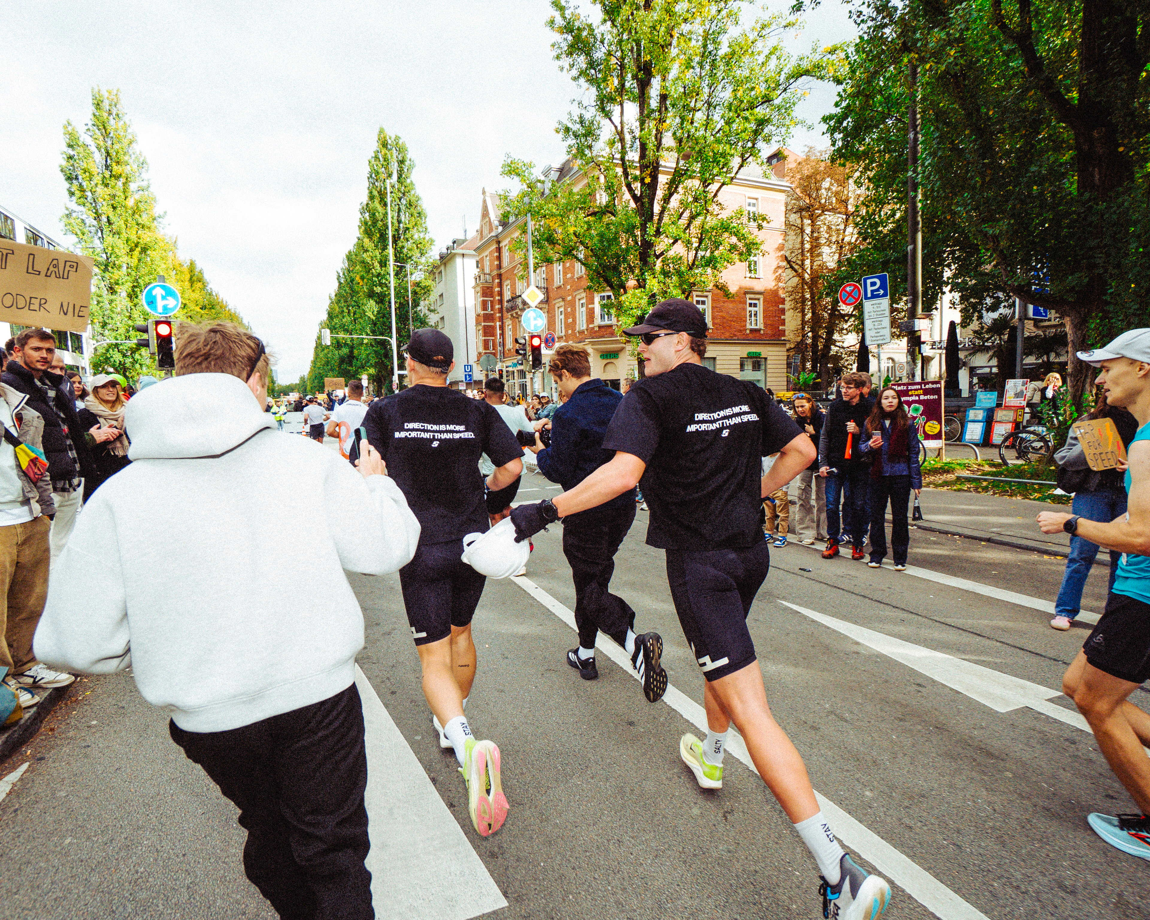 Was für eine Bereicherung Gemeinschaft im Individualsport Laufen sein kann, merkte er das erste Mal in London. Knapp 1000 Leute liefen gemeinsam durch die Stadt. „Eine unglaubliche Erfahrung“, schwärmt Müller. Im April 2023 lief er mit sechs Freunden in Paris den Marathon, dabei entstand die Idee: Lass uns was gemeinsam machen. Und so gründete er mit Jannis Reichmuth aus der Schweiz, Jan Malte Gollan aus Amsterdam, Maximilian Warum aus Wien sowie Dominik Herrmann und Florentin Becker aus München den Salty Sports Club.