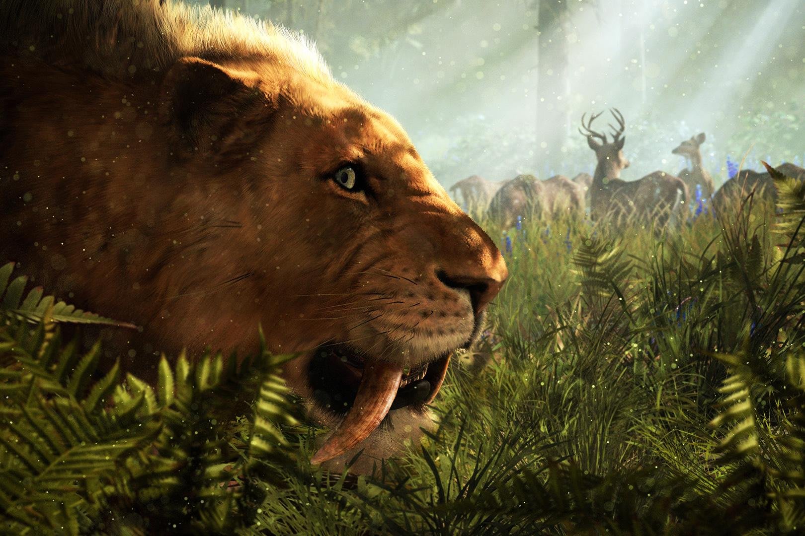 Jedes Tier hat seine Vor- und Nachteile. Während ein Säbelzahntiger besonders „bad-ass“ aussieht, ist er sicher nicht in jeder Situation die beste Wahl. „Der Säbelzahntiger ist der schnellste der drei, kann aber nicht schwimmen, während der Bär der langsamste der drei ist, dafür aber schwimmen kann. Je nachdem, welche Eigenschaft du gerade dringender benötigst – Säbelzahntiger, Bär und Mammut können dir bestimmt helfen.“